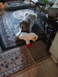 Learn MoreI’m his favorite toy—he gently nibbles my hands until he gets attention and cuddles. Occasionally, he’ll grab his stuffed sheep and toss it in the air for fun. His must-have treat is Amazon Wonder Bound Dental Sticks, served precisely at 5:30 pm. Even a minute late and he stares and barks until he gets one. Chewys are THE only acceptable substitution—he takes his treats very seriously.
