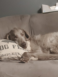 His most unique quality is that he looks and sounds like he stepped out of a storybook. Long-haired Weimaraners are rare, and he takes it even further with a Whoville-style hairstyle that makes him resemble a Dr. Seuss Who. Pair that with his love of ‘singing’—howling along whenever humans are singing—and he could fit right into Whoville itself. His appearance and musical spirit make him truly one of a kind.
