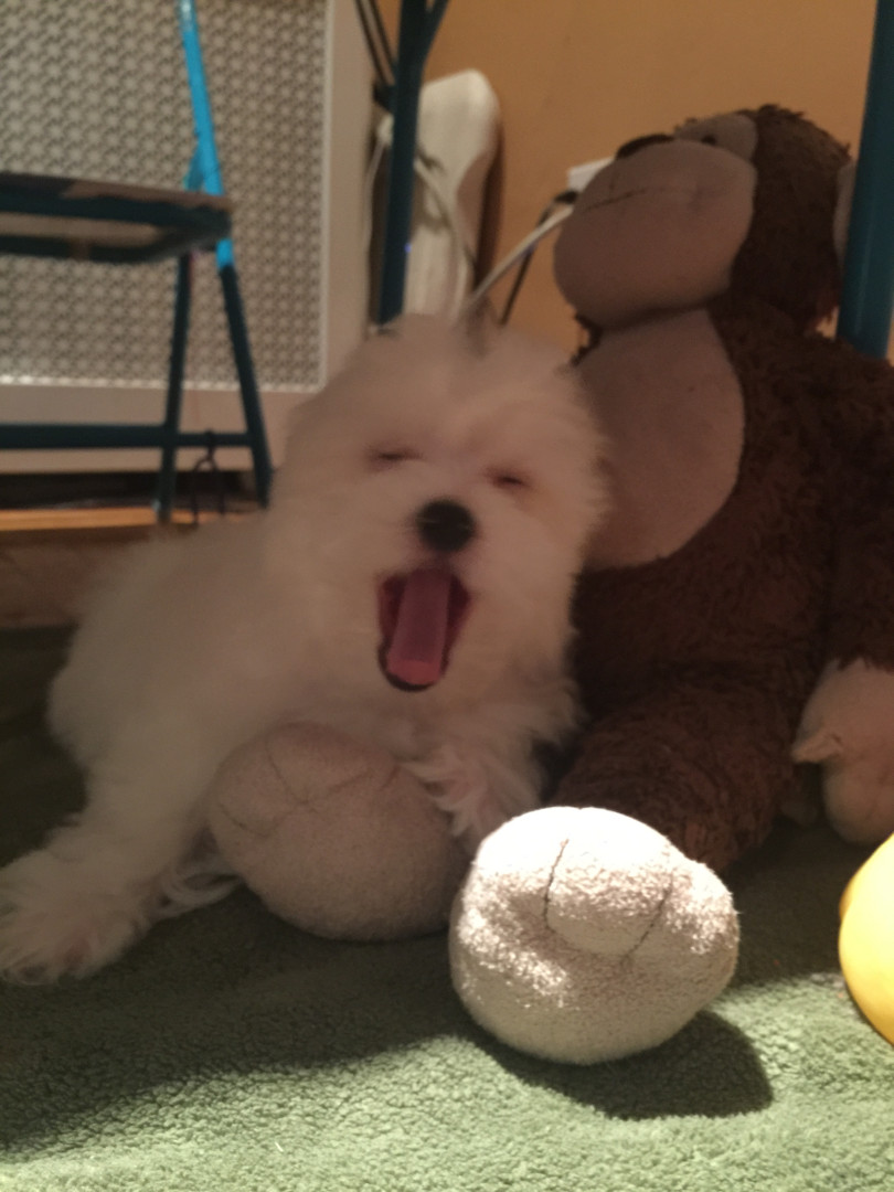 When he gets super excited, he can stand on his back legs, wave his front doors and go in circles for a minutes and minutes and minutes!