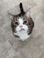 Scrumpus’s unique quality is that you can see the gratitude on his face. He literally crawls on top of me, gets a close and cuddly as he can and then looks at me with happiest face as if he is saying THANK YOU! I believe he was so tired of life on the streets because he doesn’t even sit in the window to look outside, which is very odd for a cat! He just has no desire! The look on his face was I've been out there, it's a big cruel world and life on the "inside" is like kitty heaven!