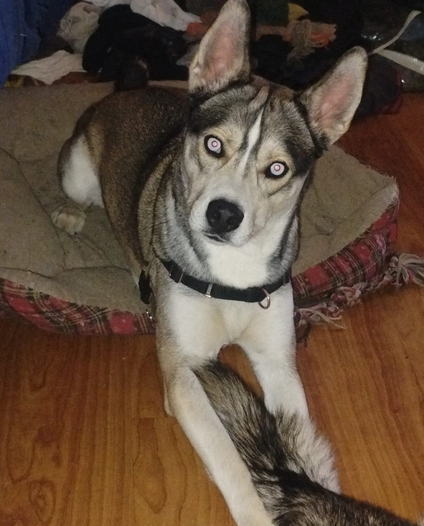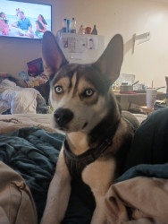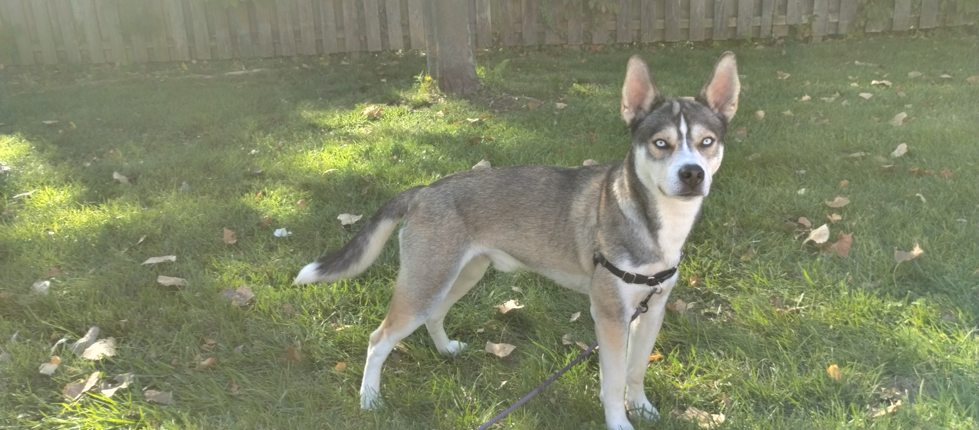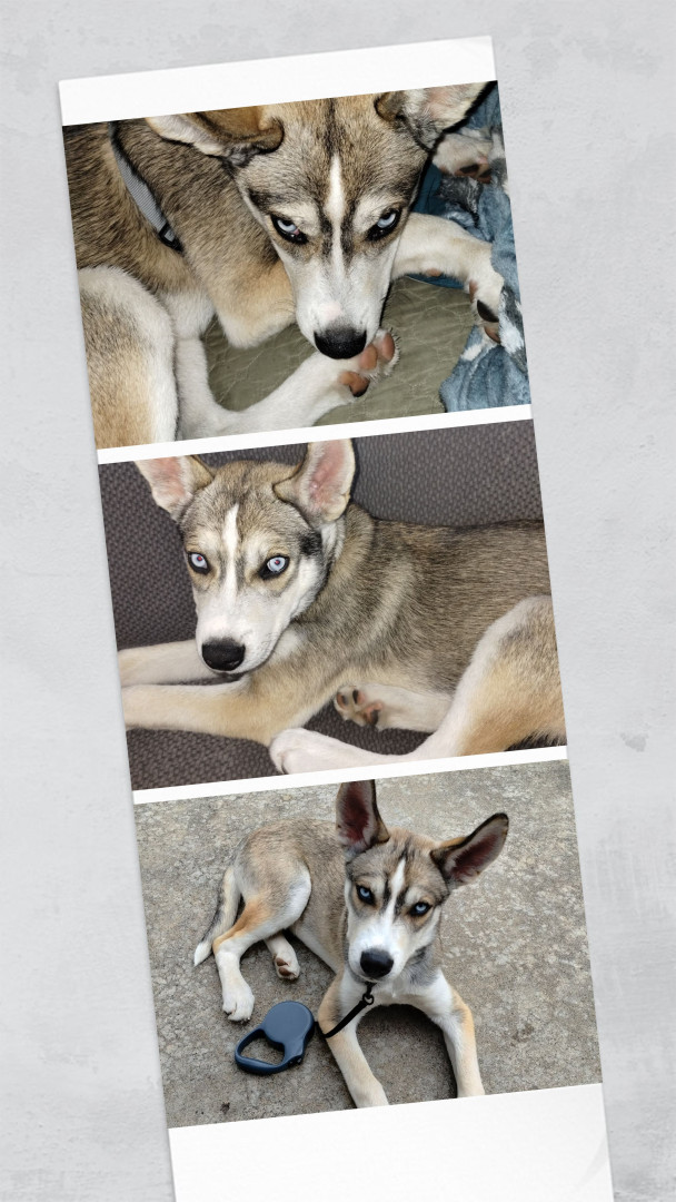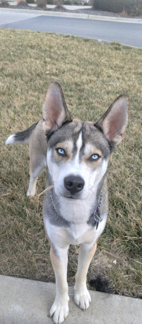 He's husky and lab mix, very playful, sweet is very quiet for a husky, goes outside without worries of him leaving the yard, he luvs to