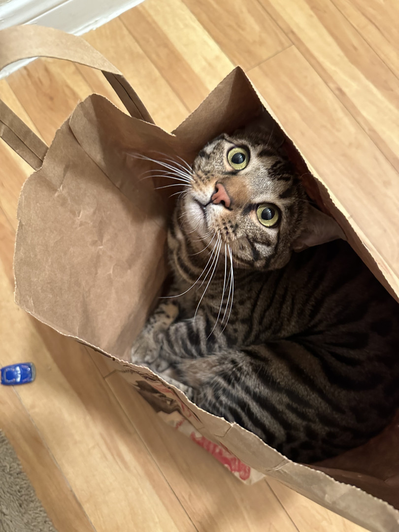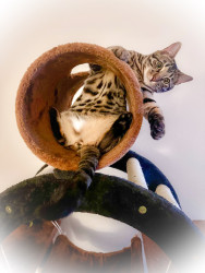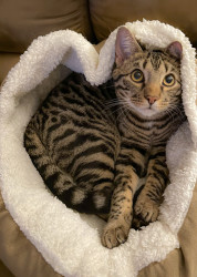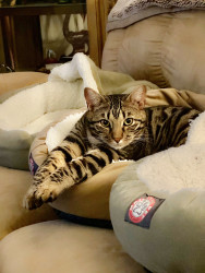 Sebastian is 3 year old male bengal that I adopted as a kitten from a rescue. His shenanigans keep me smiling and his cuddles warm my heart.