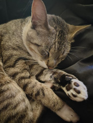 Severous is a delightful, medium-sized cat distinguished by his classic tabby coat.