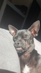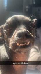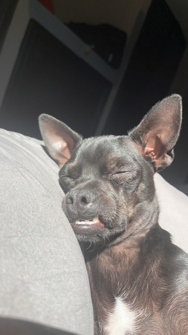 Shadow is the goofiest pup we’ve ever had. He loves random pinecones and carrots. We love his little underbite and big attitude.