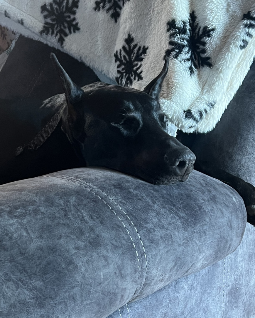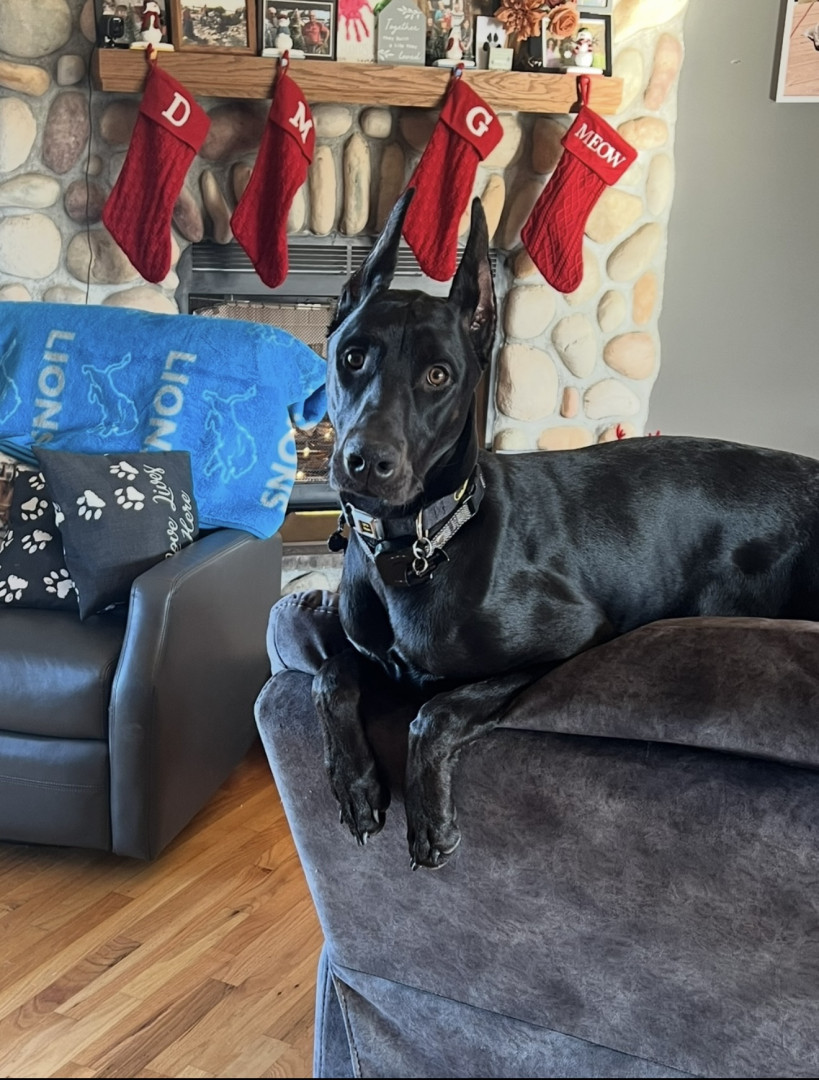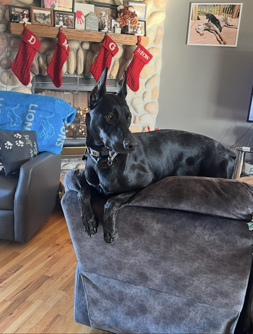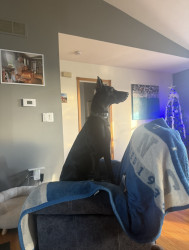 9 month old Jet black Doberman!! Lover boy, lap dog, and could run a kissing booth because he loves giving kisses!!!