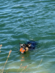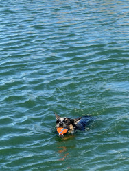 She can jump very high about 5 ft, she loves to play ball, she chases the waves at a lake or on the river.