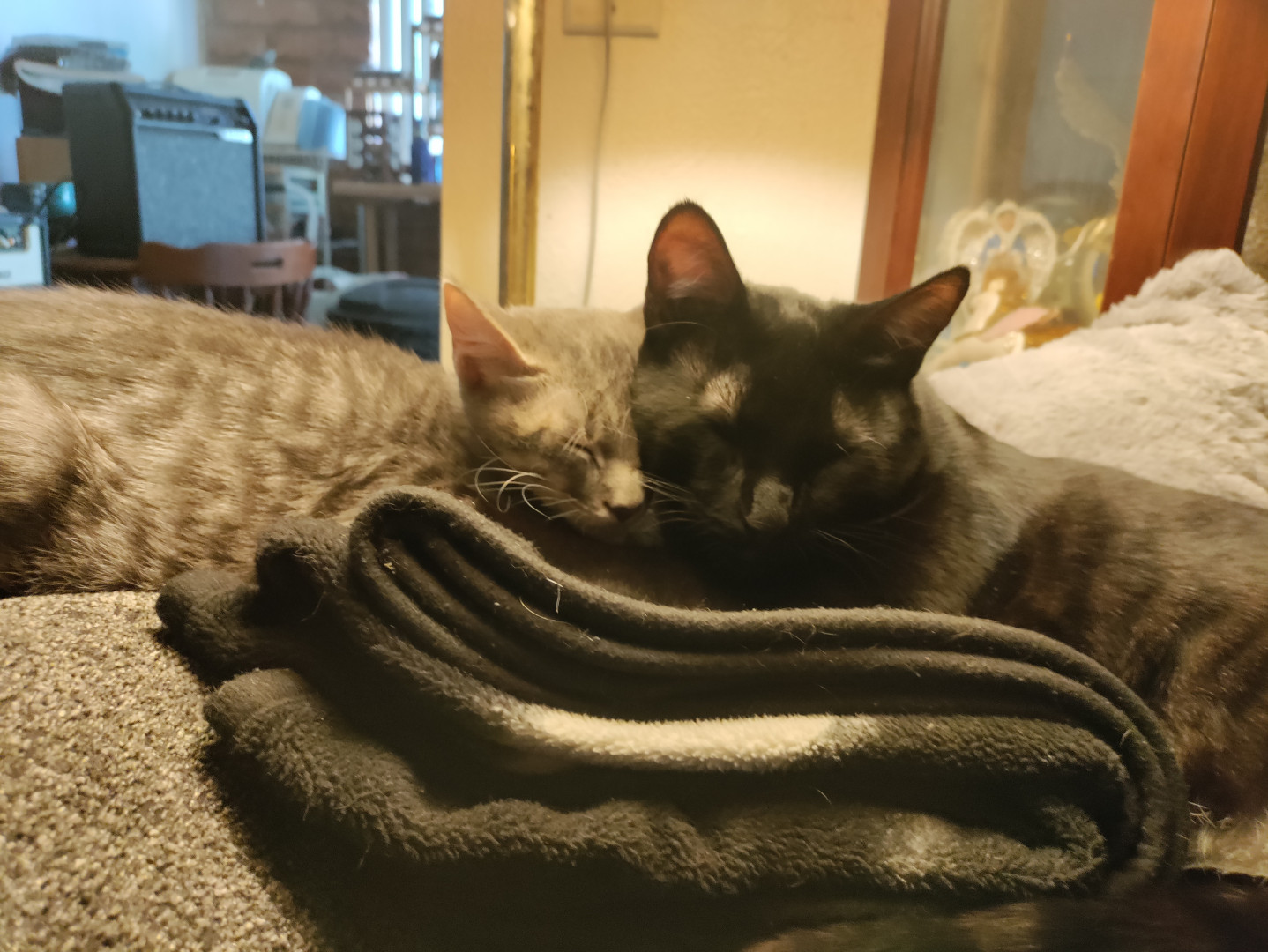 Shadow is a black rescue and Skeeter is a gray tabby