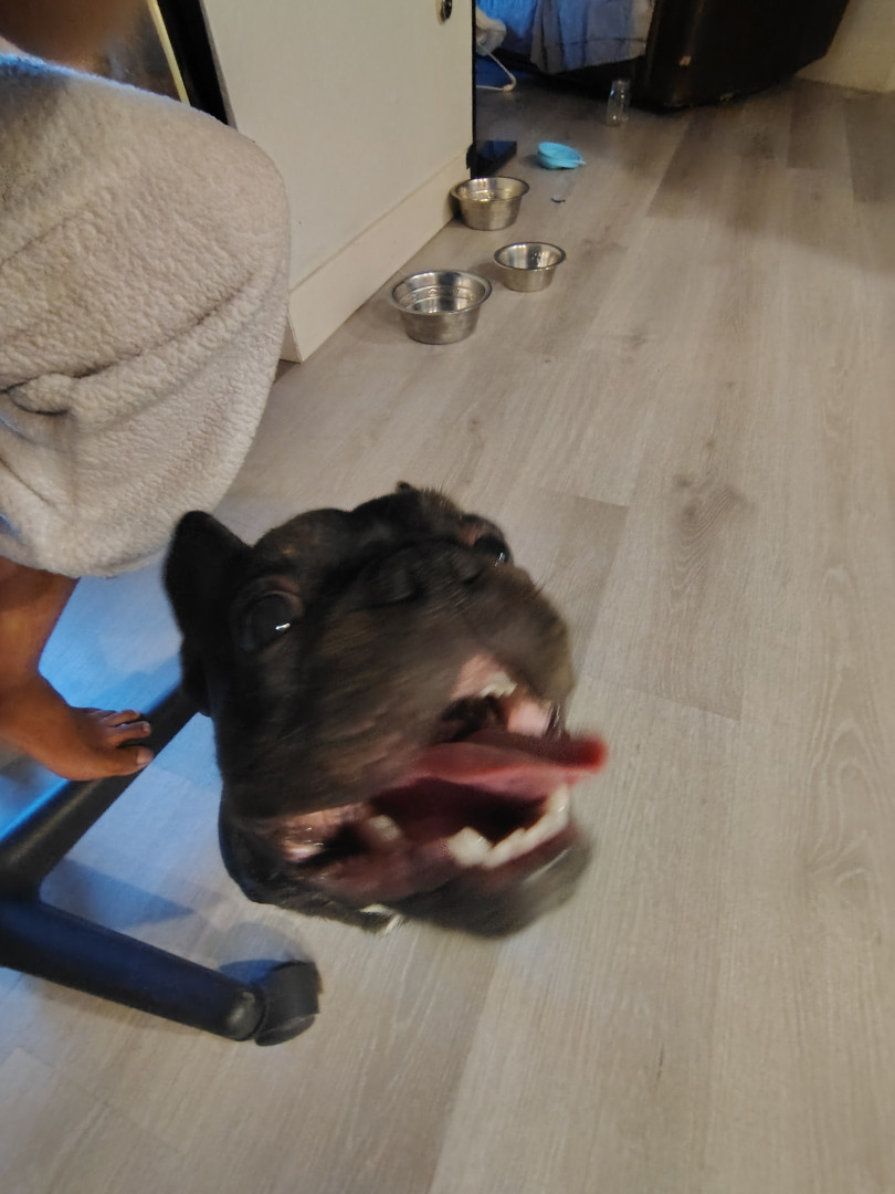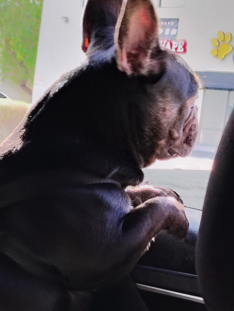 Shadow is a French bulldog. He is a eccentric ball of energy who loves nothing but play time and car rides with a funny smile