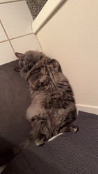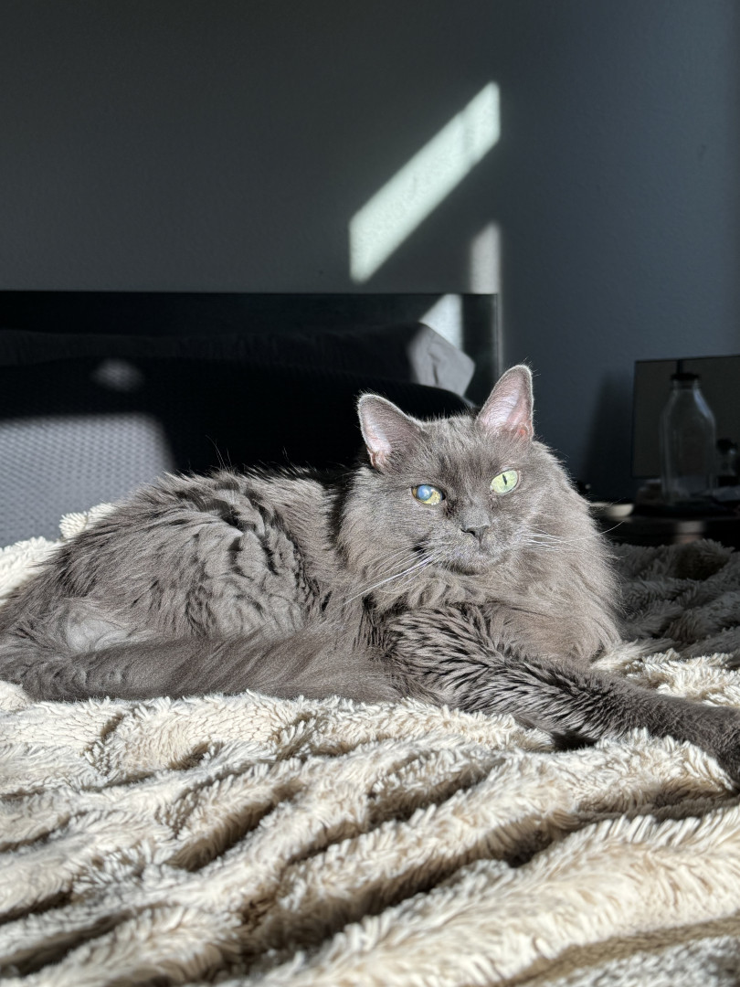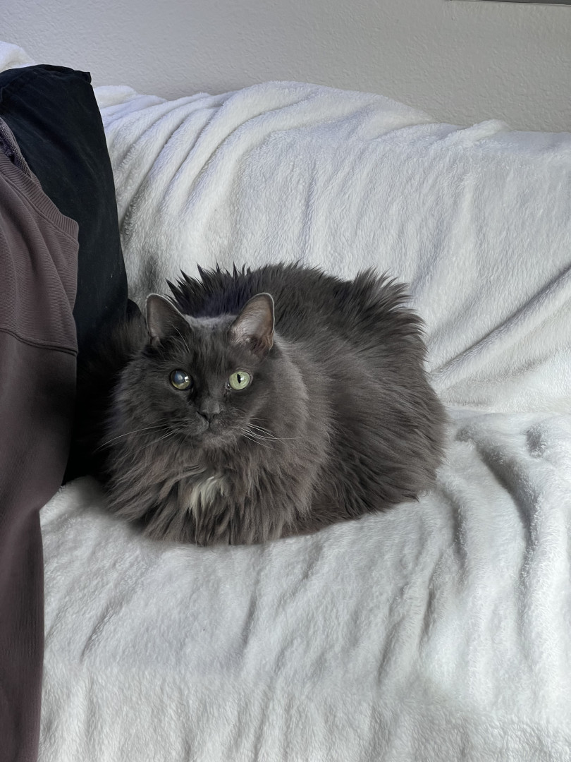 shady is a super fluffy and super blind 12 year old nebelung rescue cat! she loves food and loves to be held. the sweetest girl:)