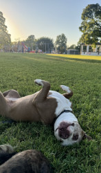 Shania Twain is a unique pit bully. She likes to run and play with her friends. She doesn’t jump on people. She’s very kind hearted different from most dogs like her and she thinks everybody should be her friend. She’s not a hyper dog. She’s very mellow why she’s such a unique dog cause she would want you to pet her and love on her so if you pick Shania you wouldn’t be sorry cause it would show the world at pit bullies can be good nature dogs,