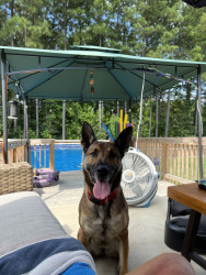 Sheba is a 5 y/o Belgian Malinois. She is my shadow as well as a member of the family too.