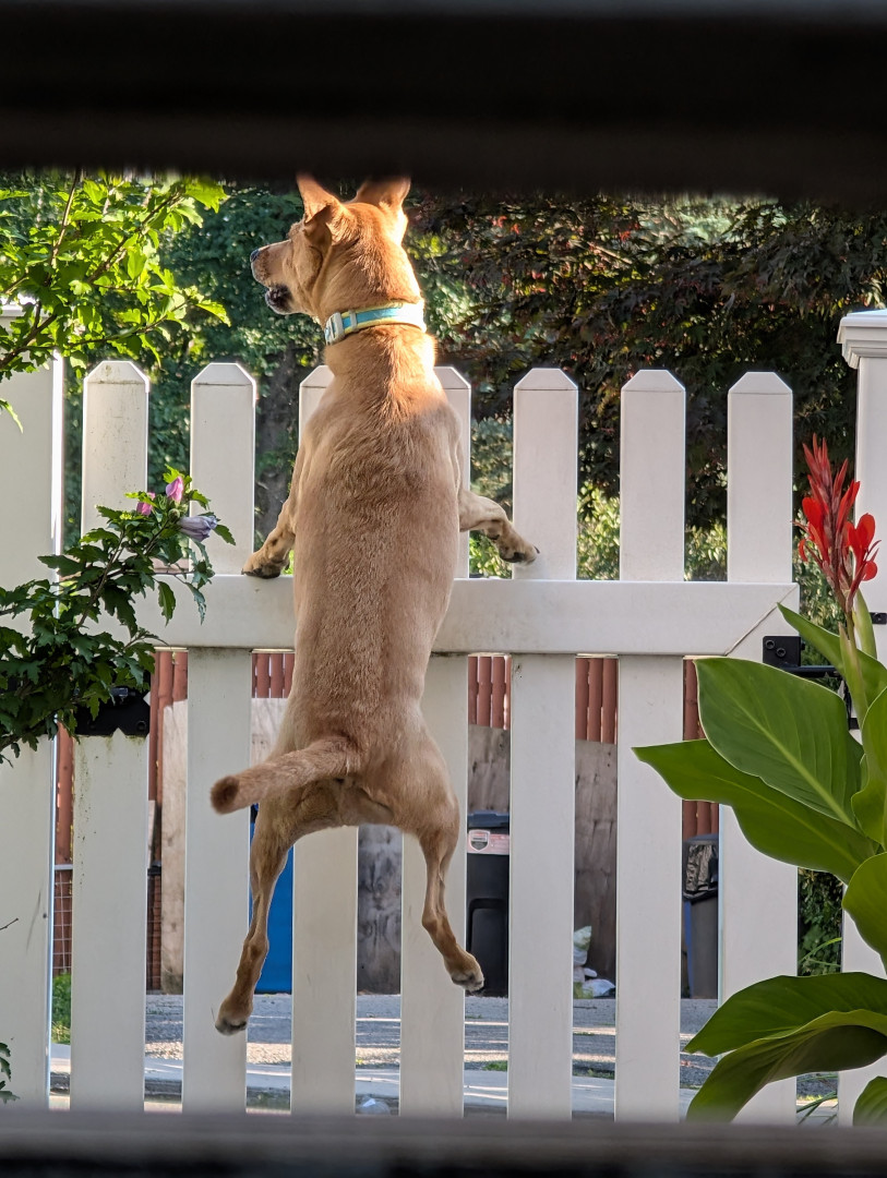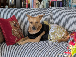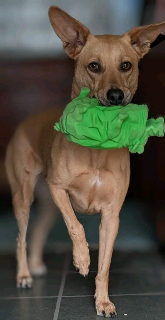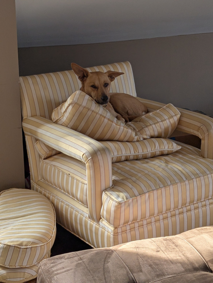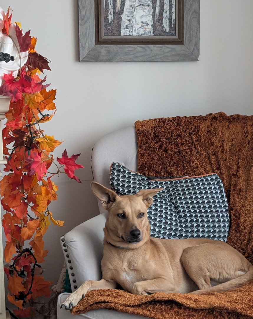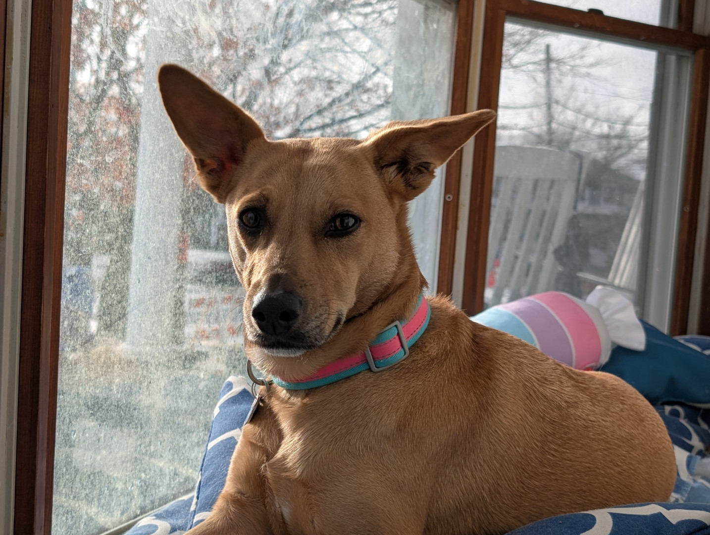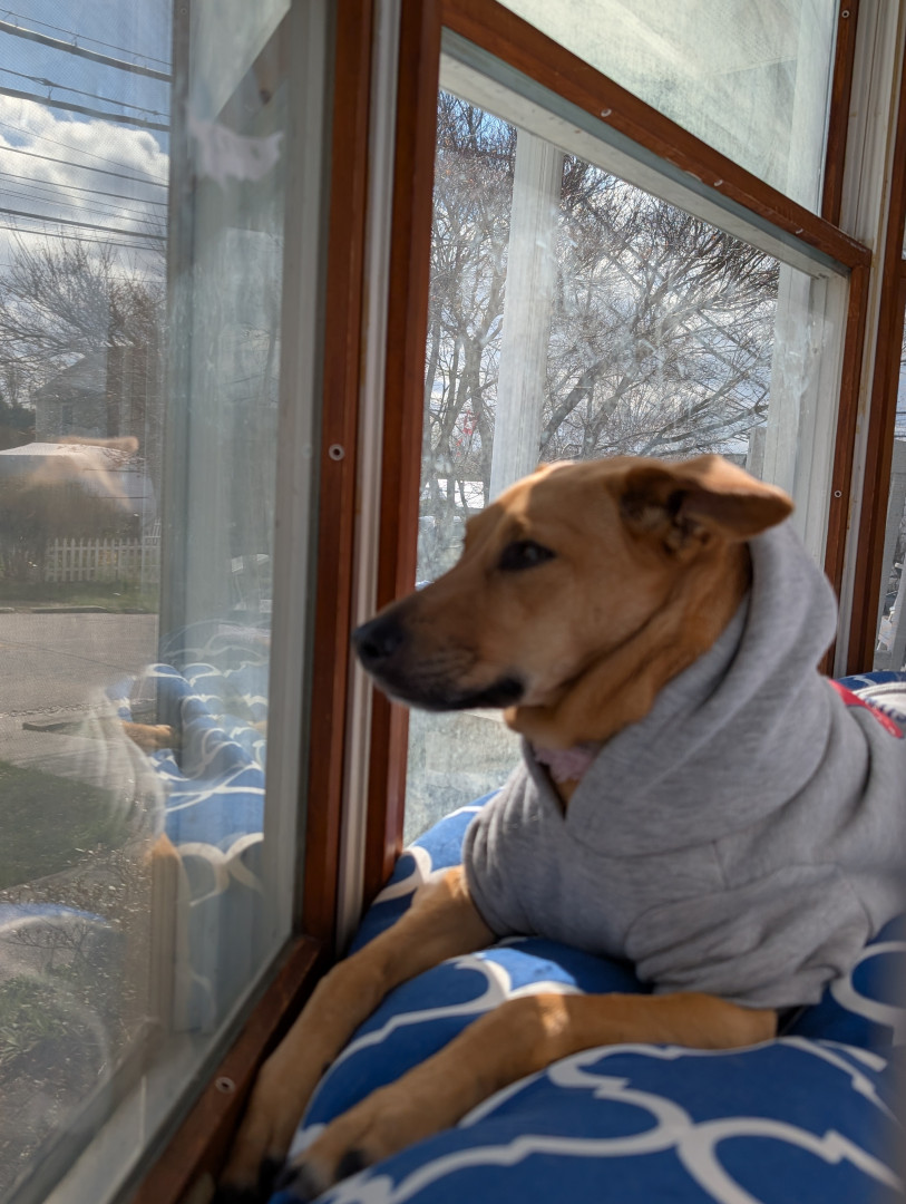 She's a rescue from Texas...she's come a long way & has turned into a smart, beautiful, loving dog...not to mention she's the neighborhood watch👀...she guards every house on our block from the bay window in front, she's hilarious!