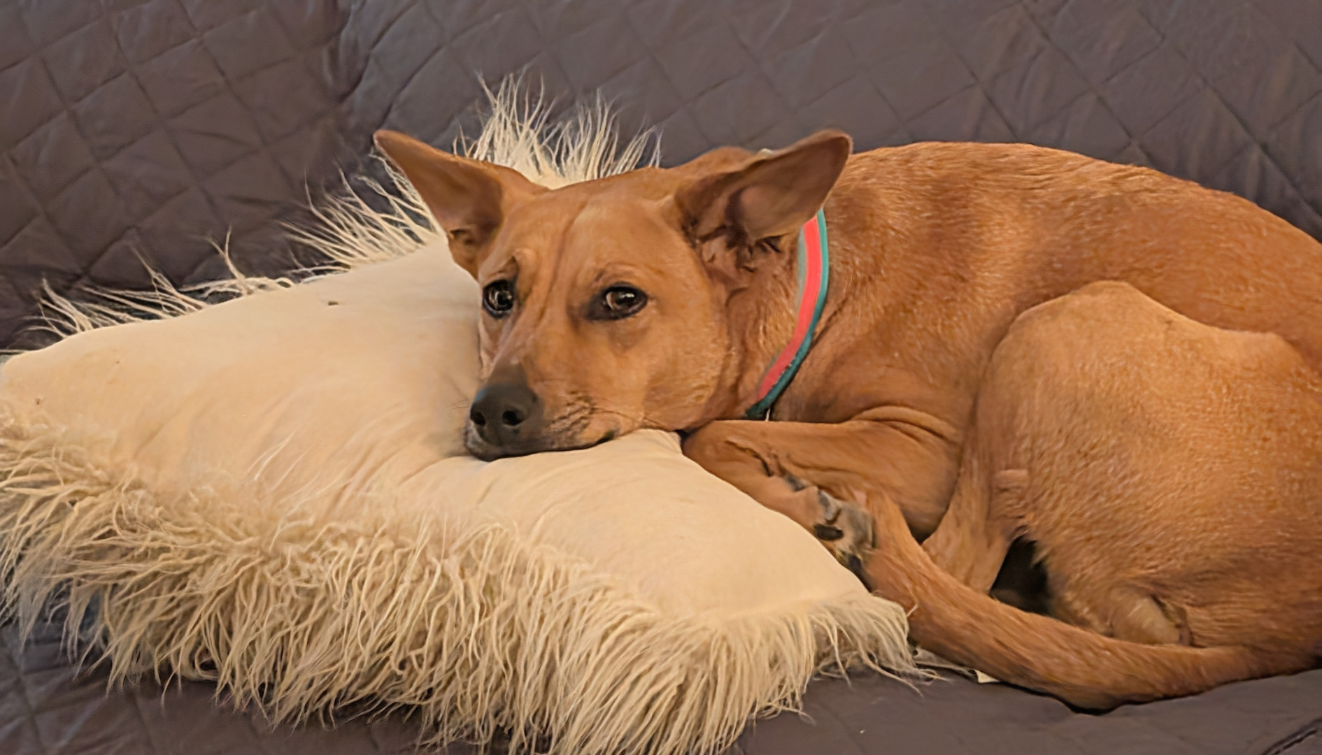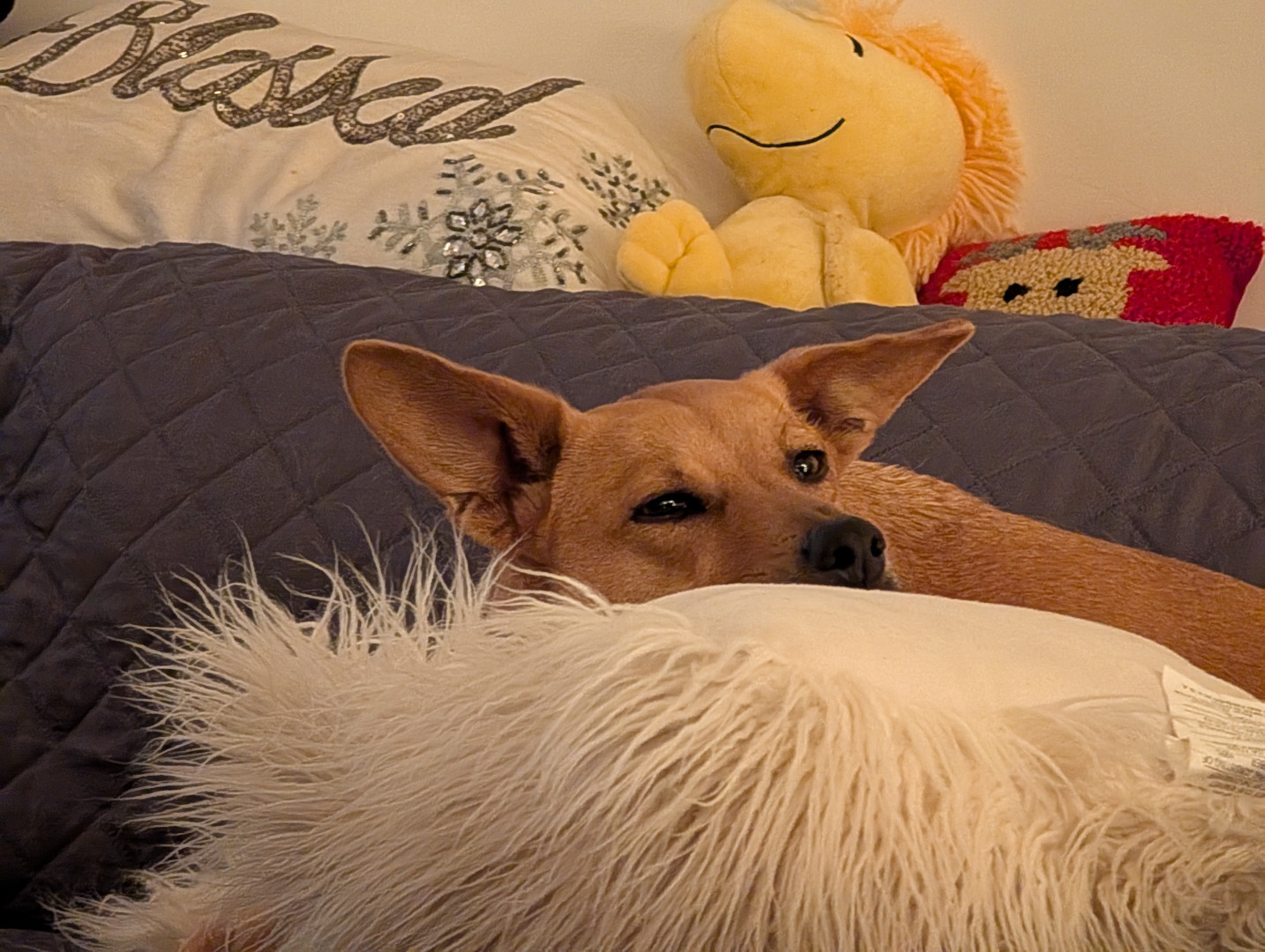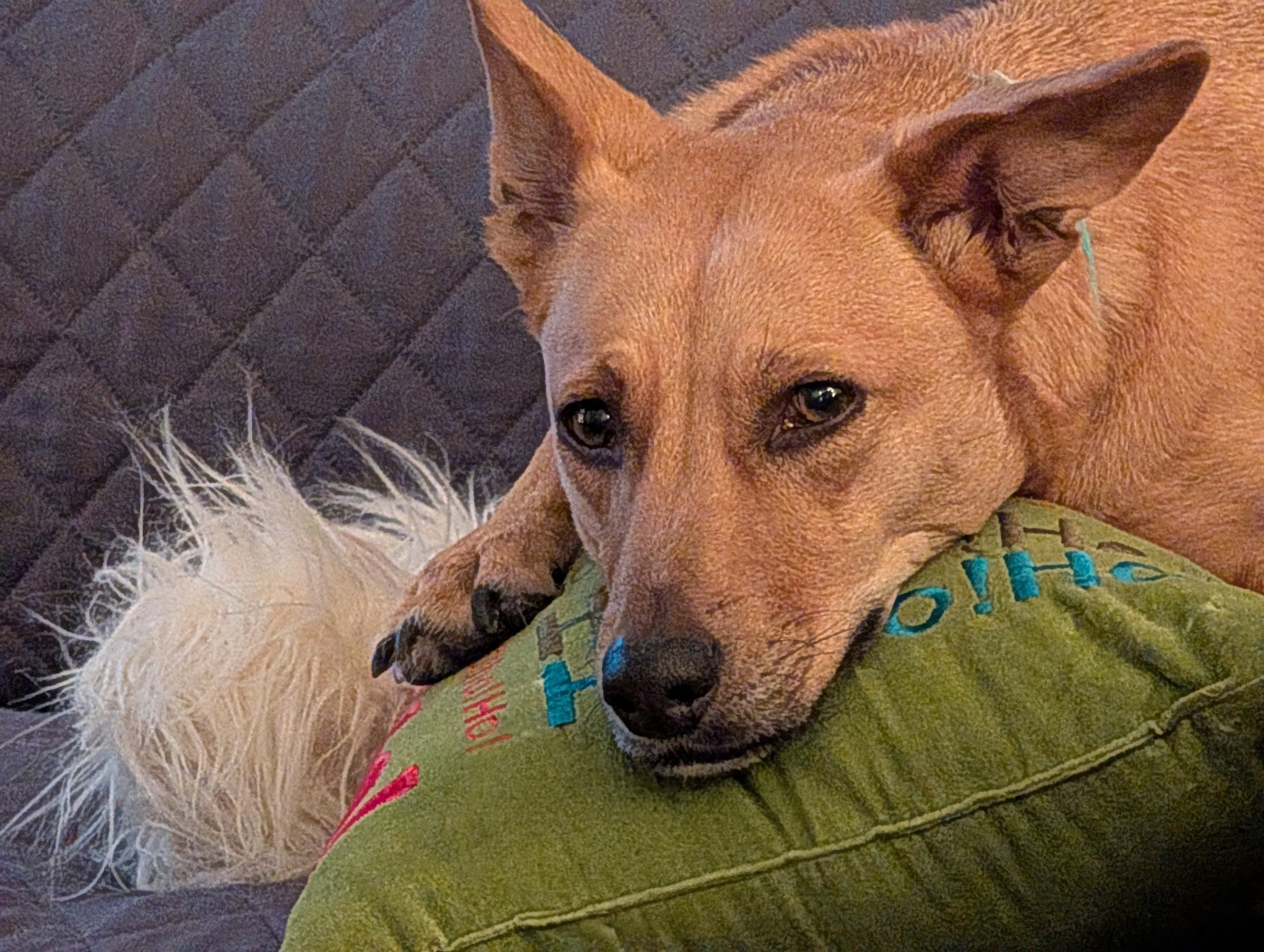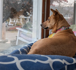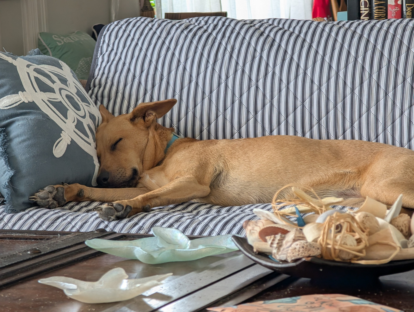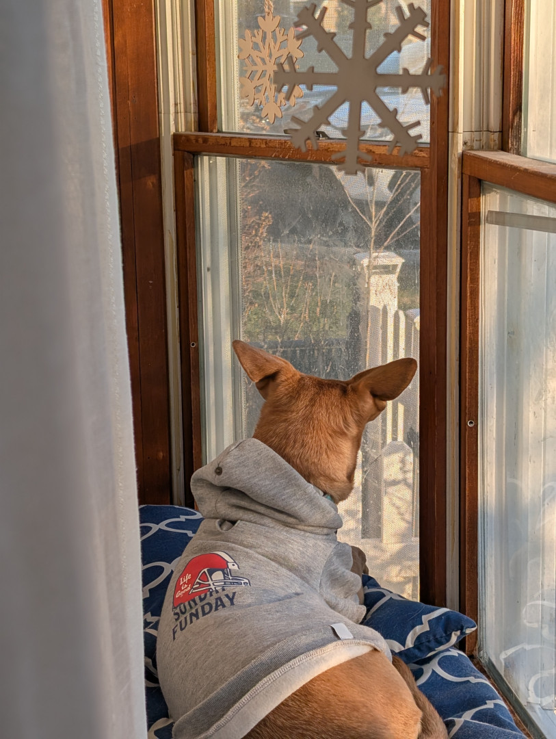 She's a rescue from Texas...she's come a long way & has turned into a smart, beautiful, loving dog...not to mention she's the neighborhood watch👀...she guards every house on our block from the bay window in front, she's hilarious!