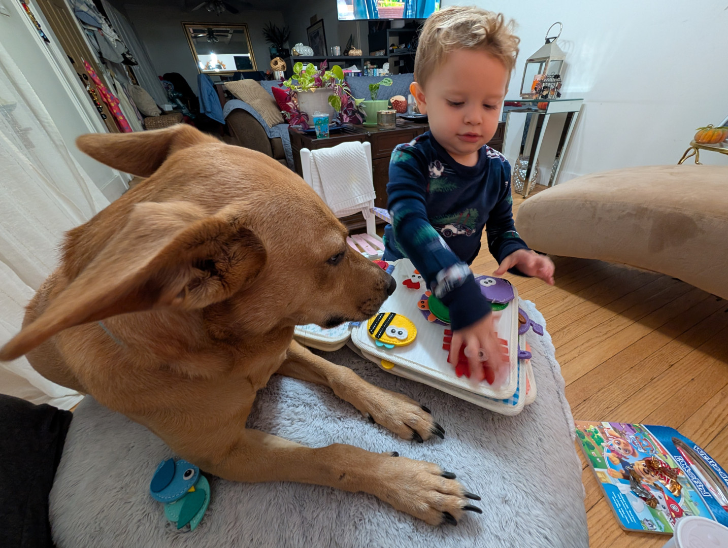 Shelby is a smartie pants! She's so loving but very protective & luvs our grandson as if he were her own, she plays with him & adores hi