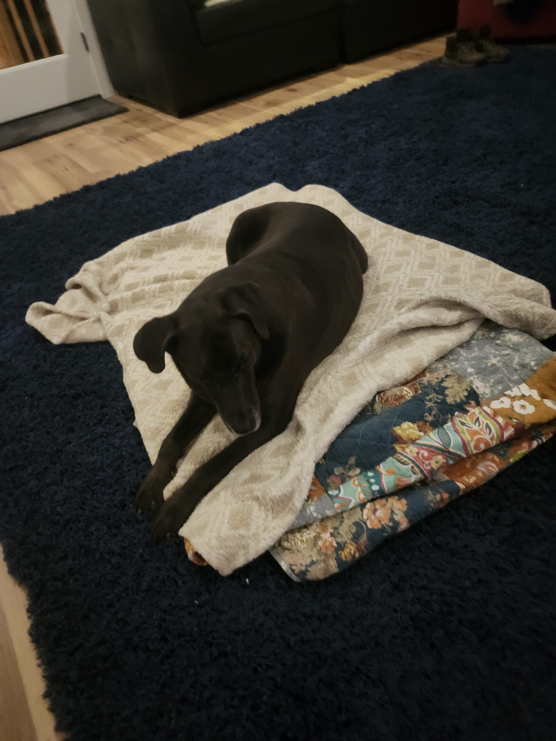 She is completely amazing. I've had a lot of surgeries on my legs and she's had to help me walk. She's been a hard working girl.