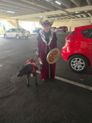 Sheppie is perfect. She goes to city council every Monday. She attends all ribbon cuttings and many other city functions she goes to the hospital and care homes to visit people that are sick. She has rescued 14 baby kittens and is loved by all.