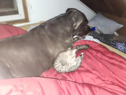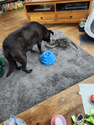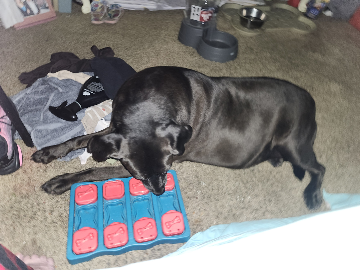 Learn MoreHer treat is duck jerkey and her toy we play with is her Trixie puzzle box. I put dry dog food in each box and she opens the lid on each one to get the food. She loves to snuggle on her bed with her bear.
