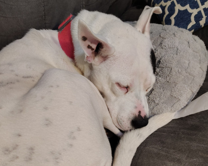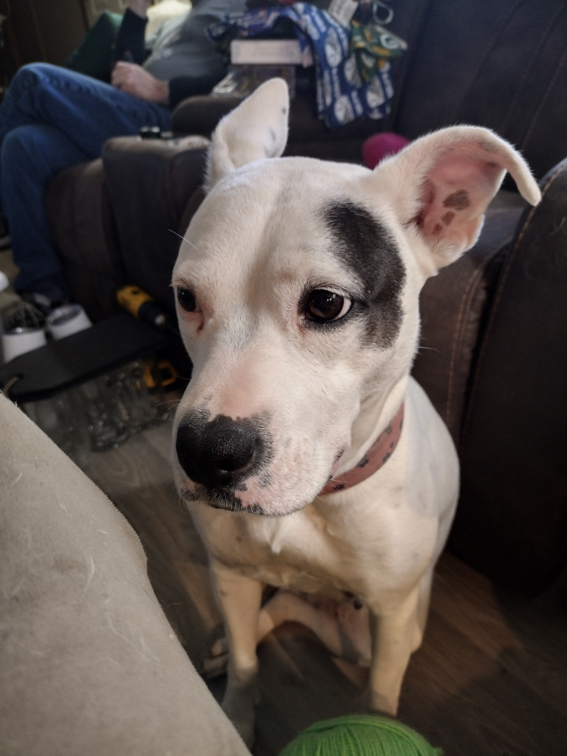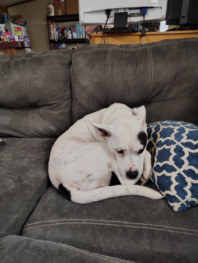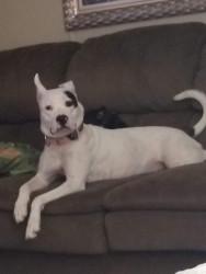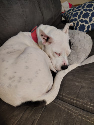 Shirley is a Pitski. She is the most lovable, she loves to cuddle and give kisses, till your whole face is washed. Though she can be loud.