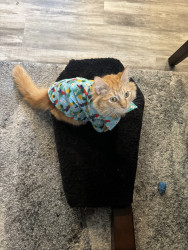 Shoto’s most unique qualities are his tiny “meeps” and his journey with Pica. He doesn’t meow—he double-meeps (think Super Mario) and occasionally squeaks his way into hearts. His Pica has taught us the importance of pet-proofing, enrichment, and extra care. From a kitty condo to a spaceman helmet, playtime, and medication, we do everything to keep him safe—because we love him beyond words.