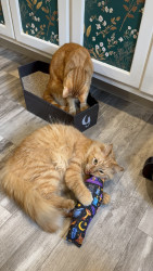 Receive Text UpdatesShoto lives for wand toys and goes absolutely feral for his favorite handmade kicker toys (the spooky ones) like it’s a full time job. Treat-wise, freeze-dried chicken bits are his true weakness, while Churus are his preferred bribe for cooperation, cuddles, and being adorable.