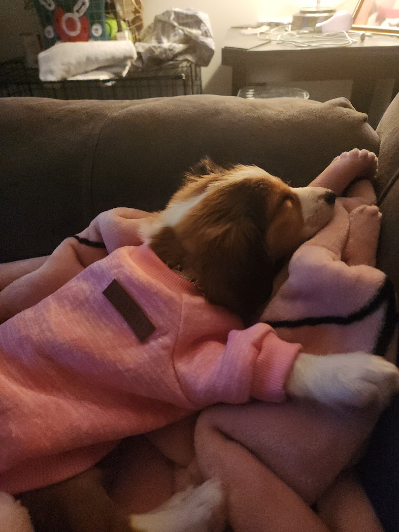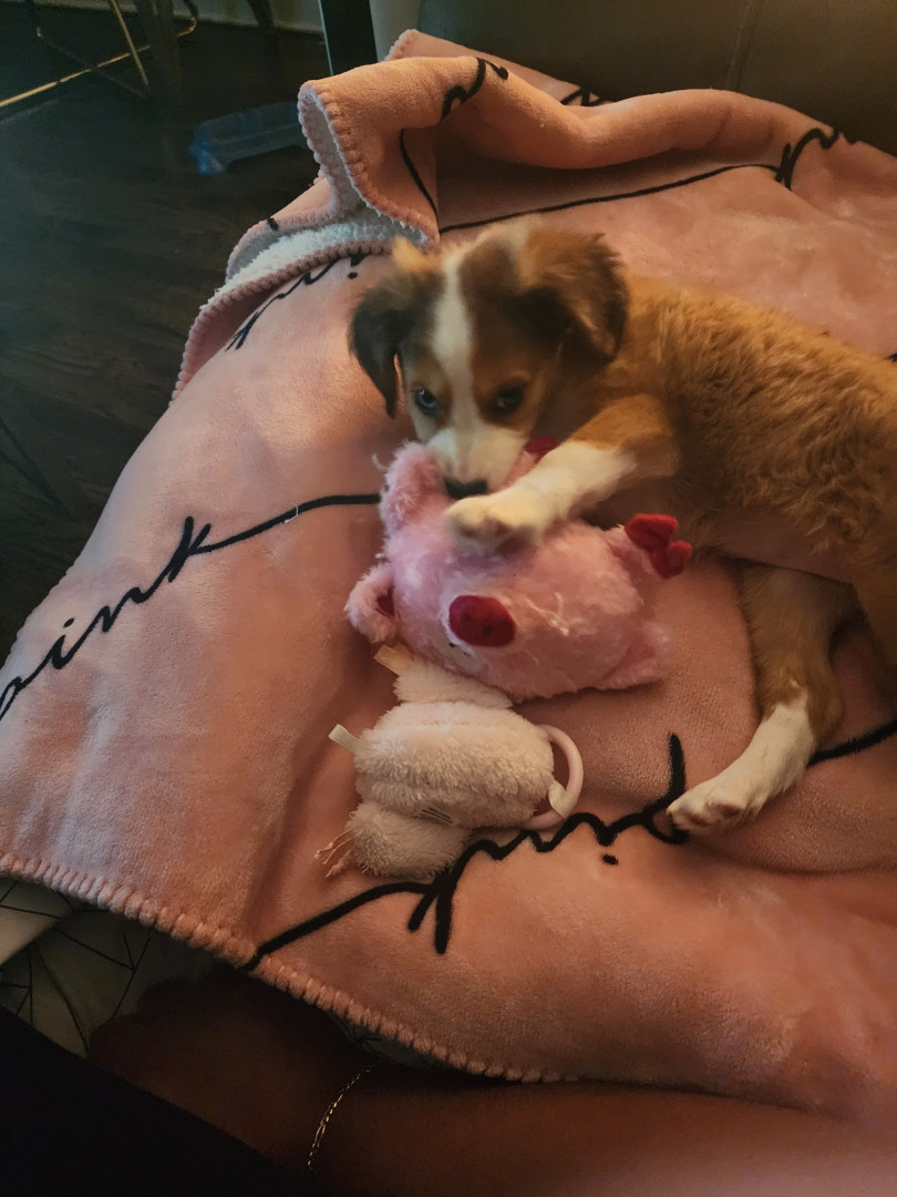 She is lovable and playful. She loves chewing on her toys and belly rubs.
