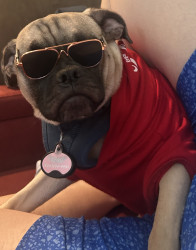Shyne Richards is a cute, adorable, lovable pug who loves tummy rubs, loves to be dressed up and loves cuddles and loves to eat .