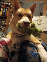 Receive Text UpdatesSiku loves his light up ball, will play fetch for hours. His favorite treat is all of them not one that he won't pass up but a pigs ear he enjoys the most