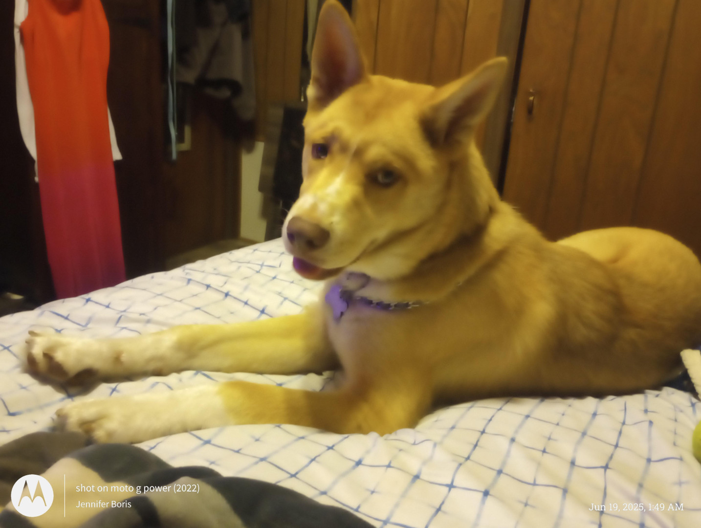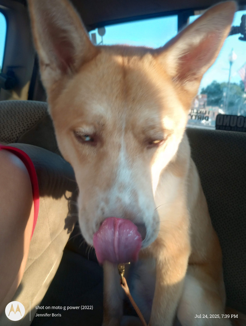 He is full of energy and has love for everyone can't pass him on the street without petting him cuz he won't let you!!!!