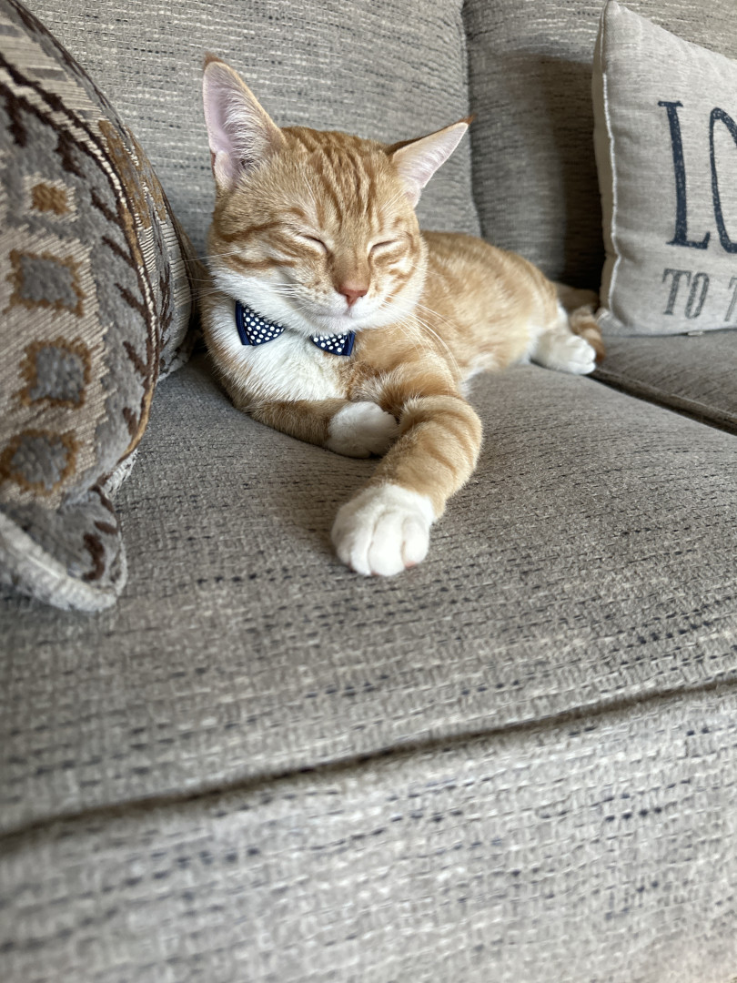 His favorite toy is his pickle with catnip in it. His favorite treat is the lickable treat.