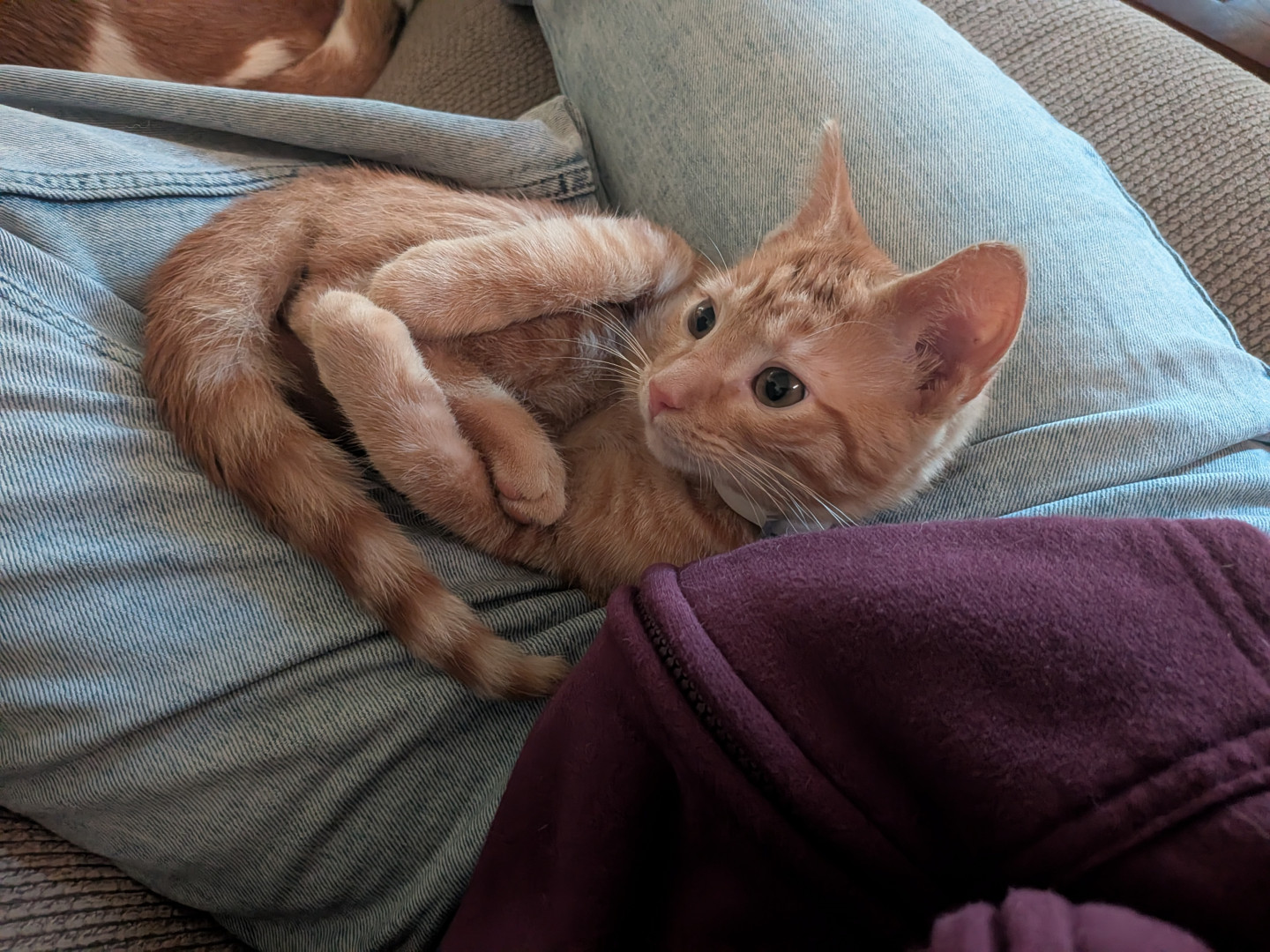 Simba is a very kind cat and very wild child he is he has zoomies all day and night and he is right there when I get up in the morning