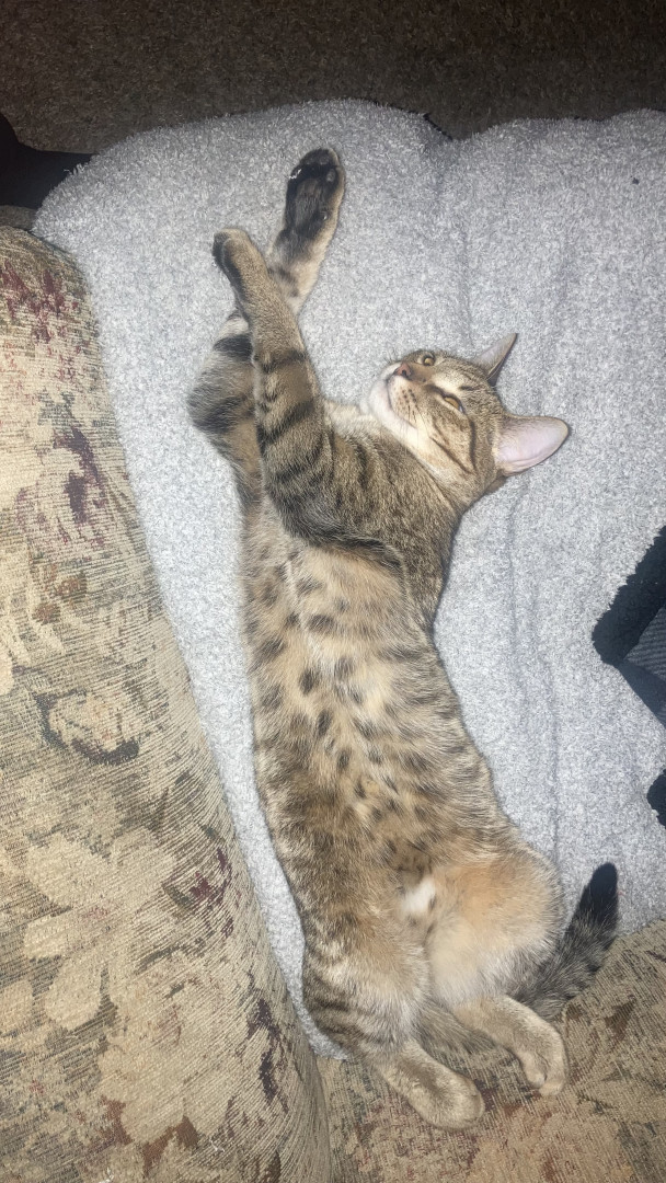 I believe Simba should be America’s favorite cat because he is the only one that had survived out of his litter and was born out in the cold and lived outside until rescued.