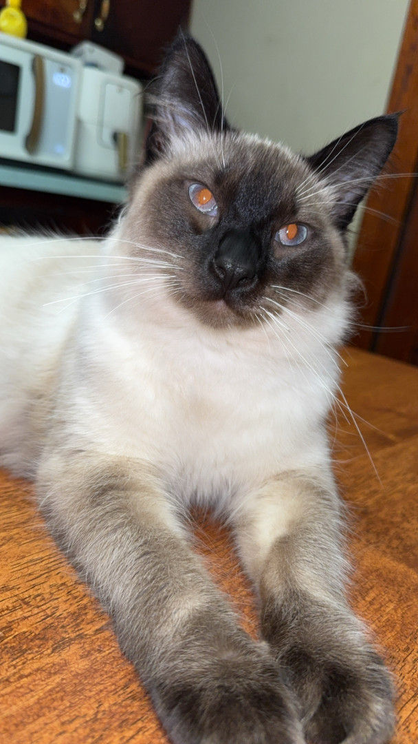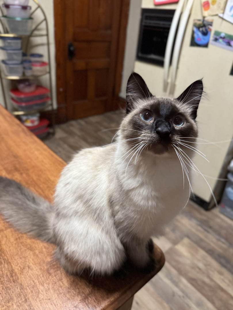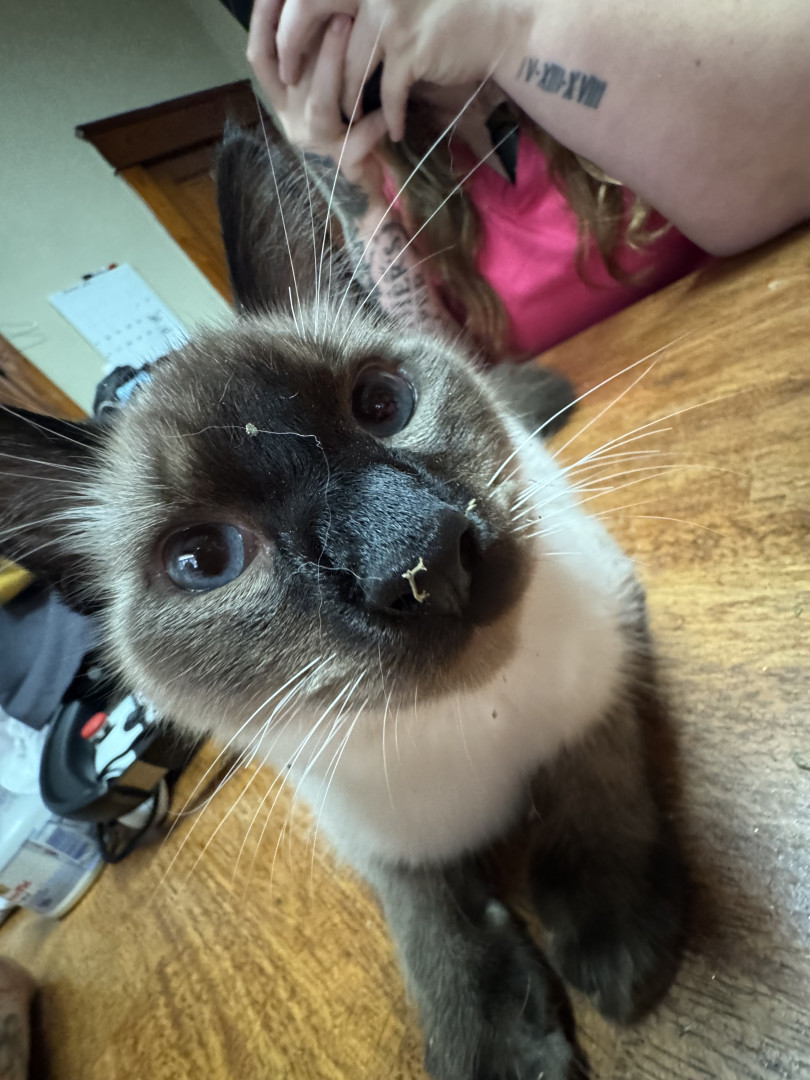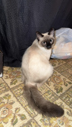 simba is a 13lb 10 month old siamese cat, he loves to eat and play with his dog sisters! he’s a sweet and loving boy, but he can be feisty!