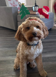 Simba's is a 3 year old Cockapoo. He is a very out going pup. He loves playing ball and loves music. He loves acting human by his eyes.