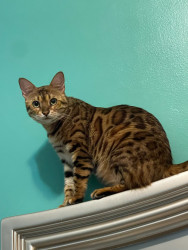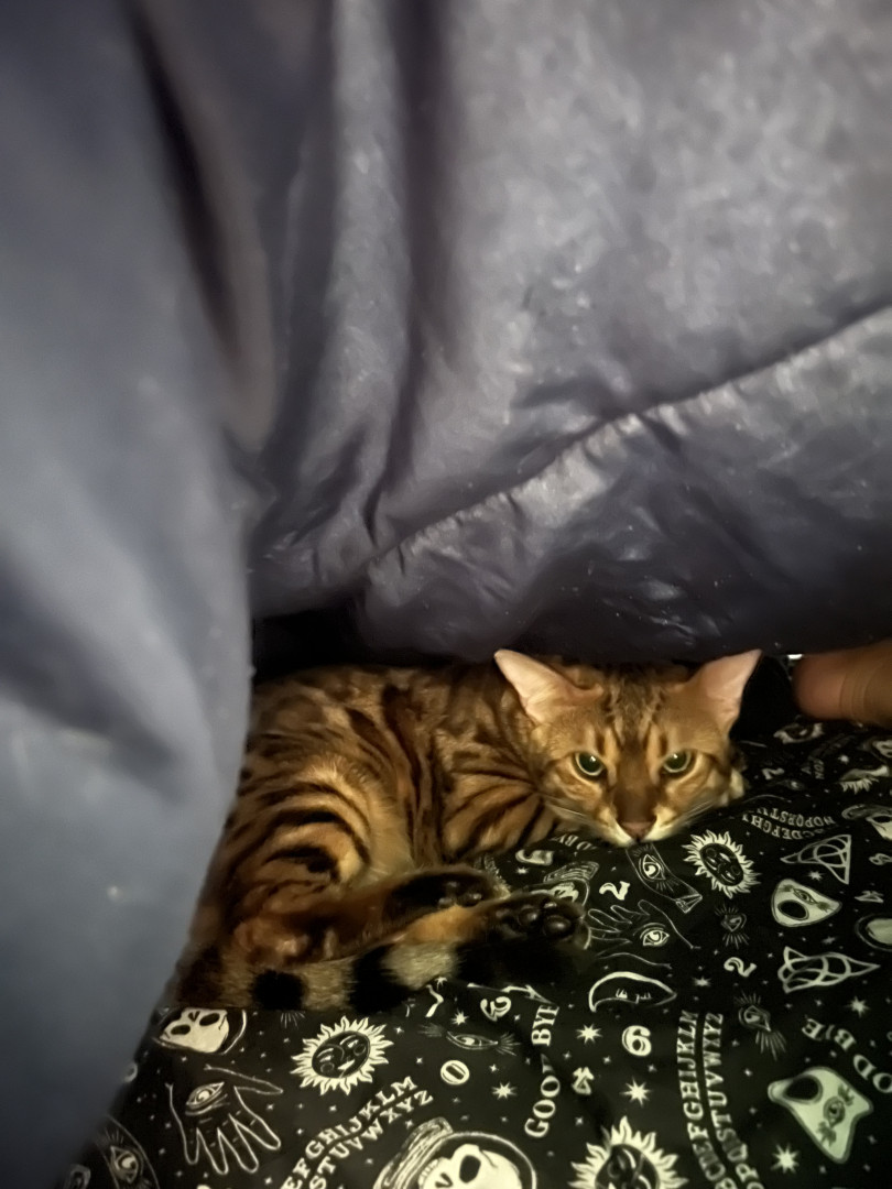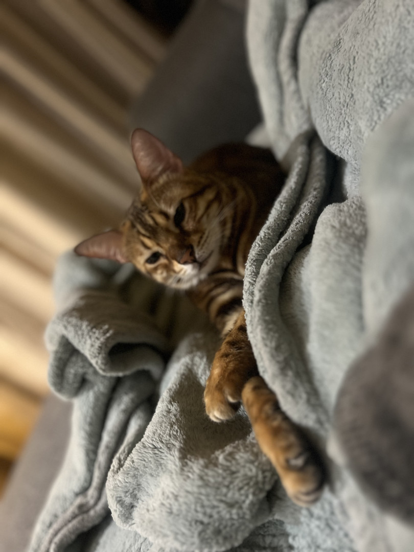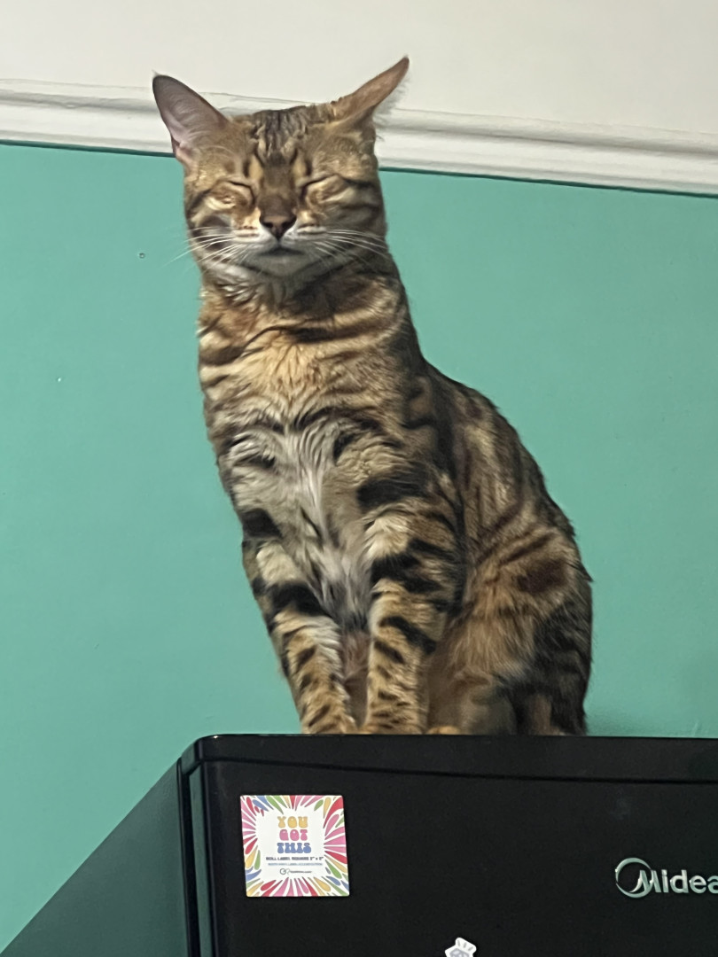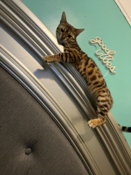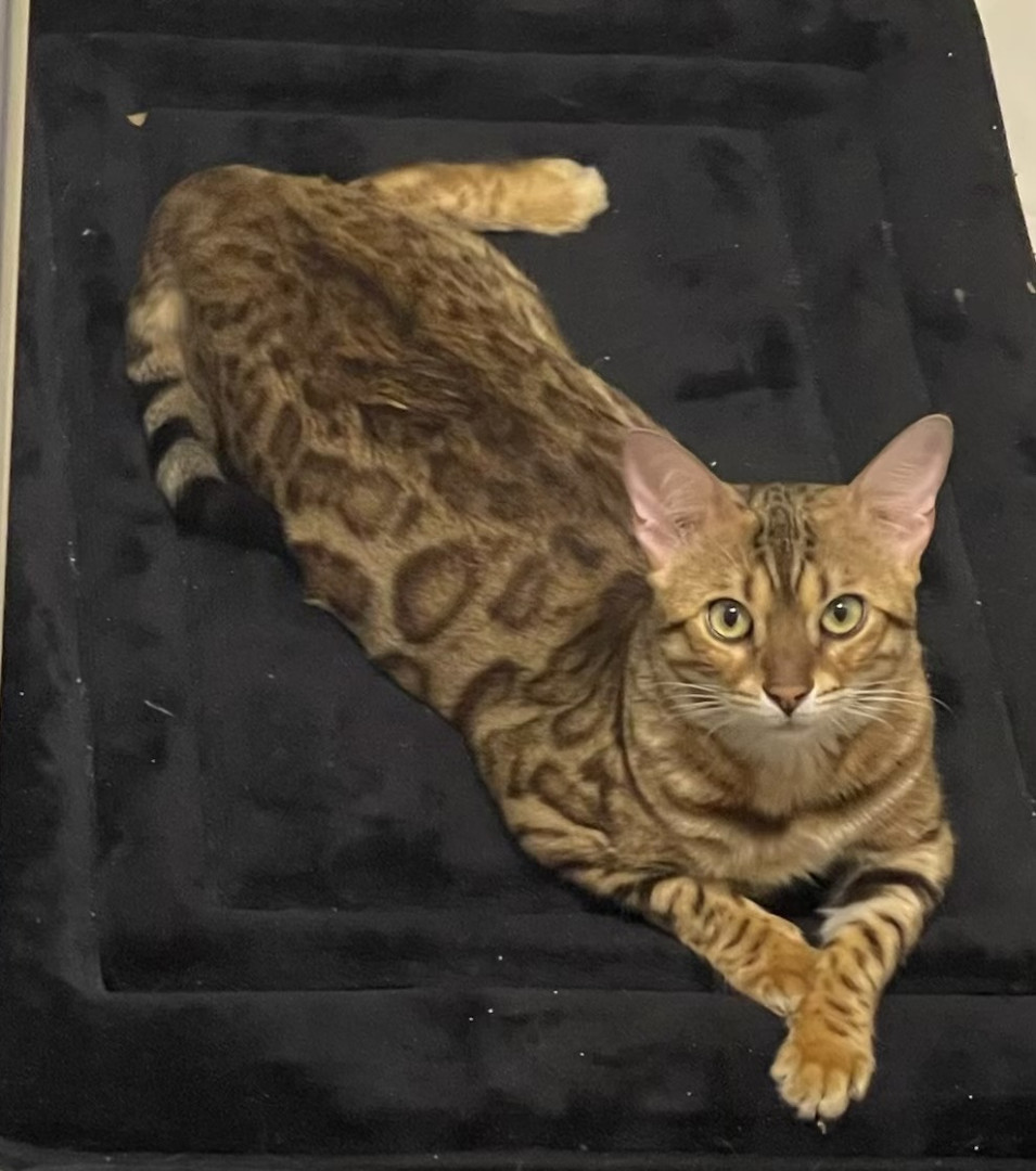 Simone is a loving, energetic, vocal Bengal who adores eating, cuddling, exploring, and taking cozy cat naps. She is also a rescue cat