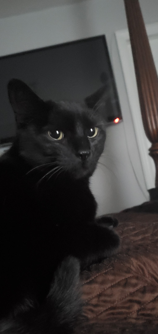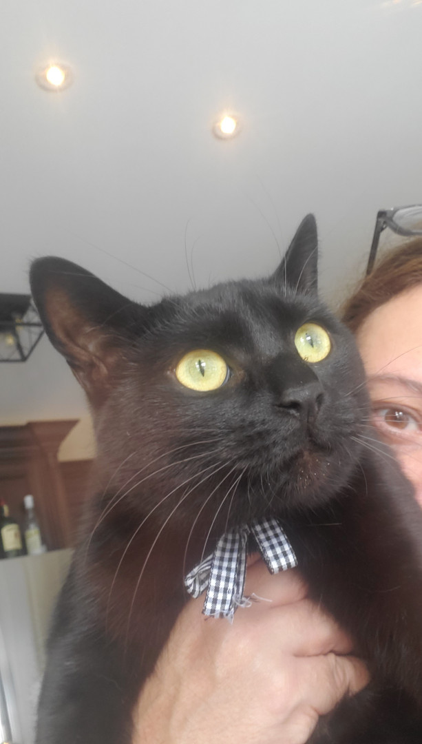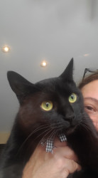 She is a beautiful black velvet catand would look great on the front cover of a magazine.