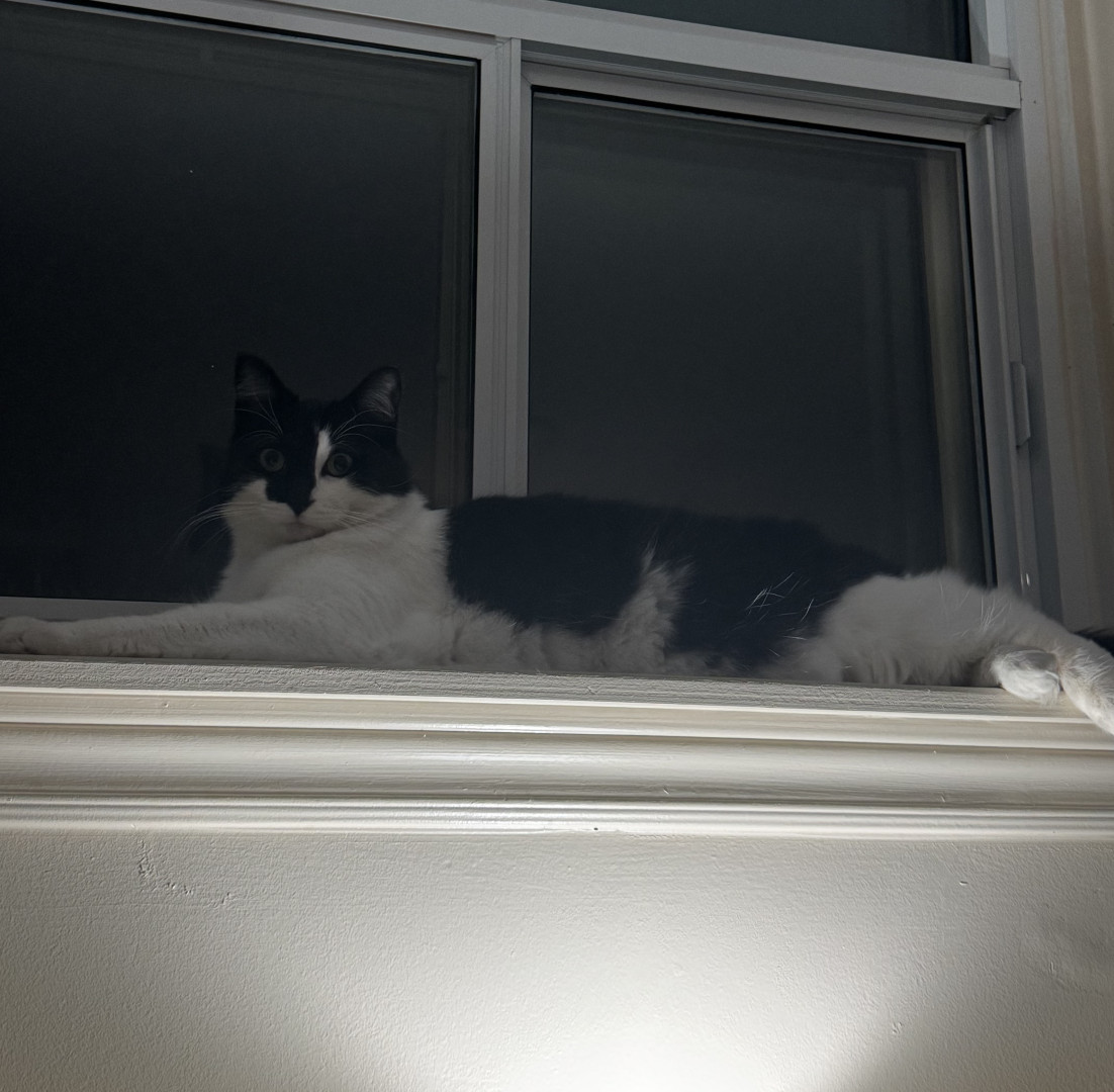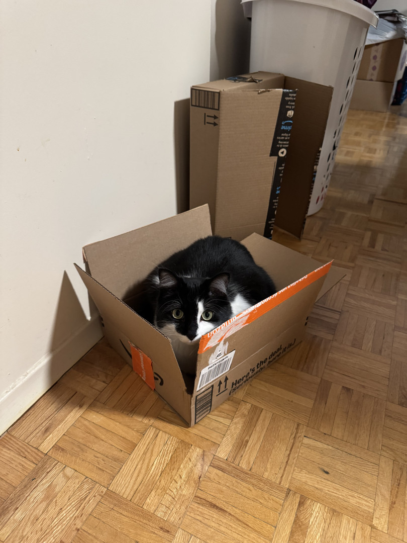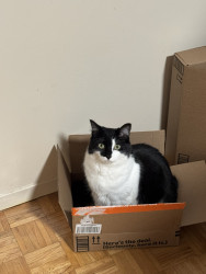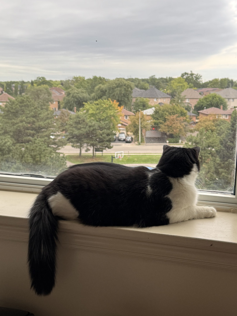 Sir FuzzPants is a relaxed, loving, very cuddly, and loves watching the world from his 6th floor window, or the comfort of his Amazon box.