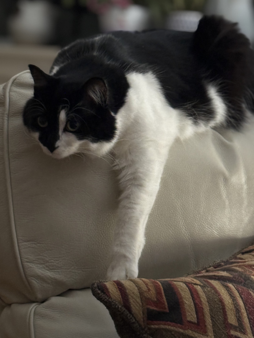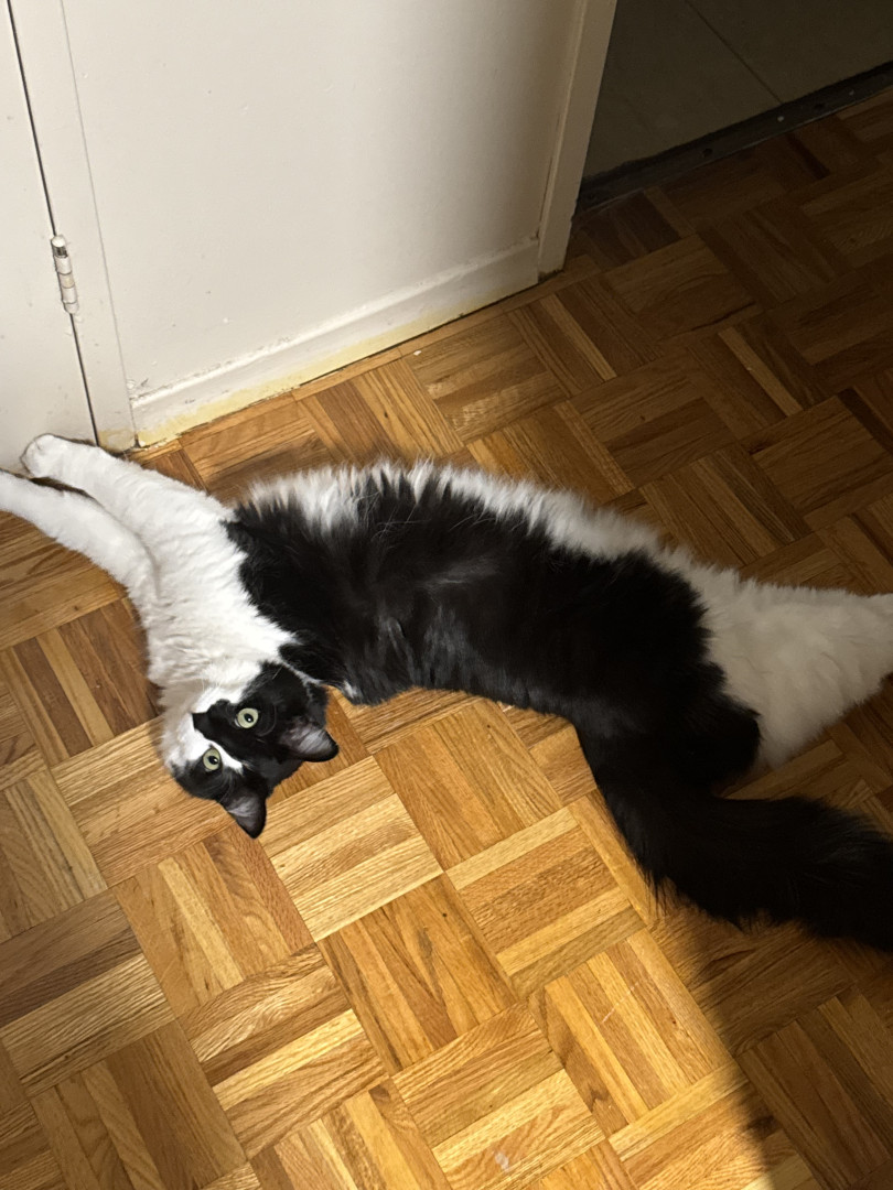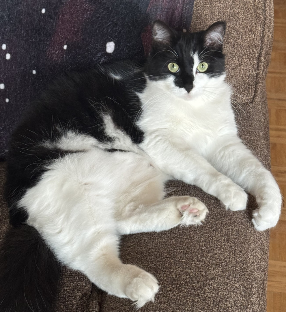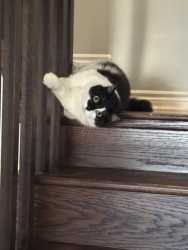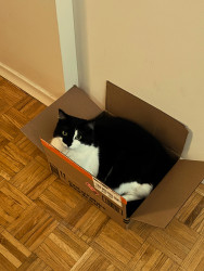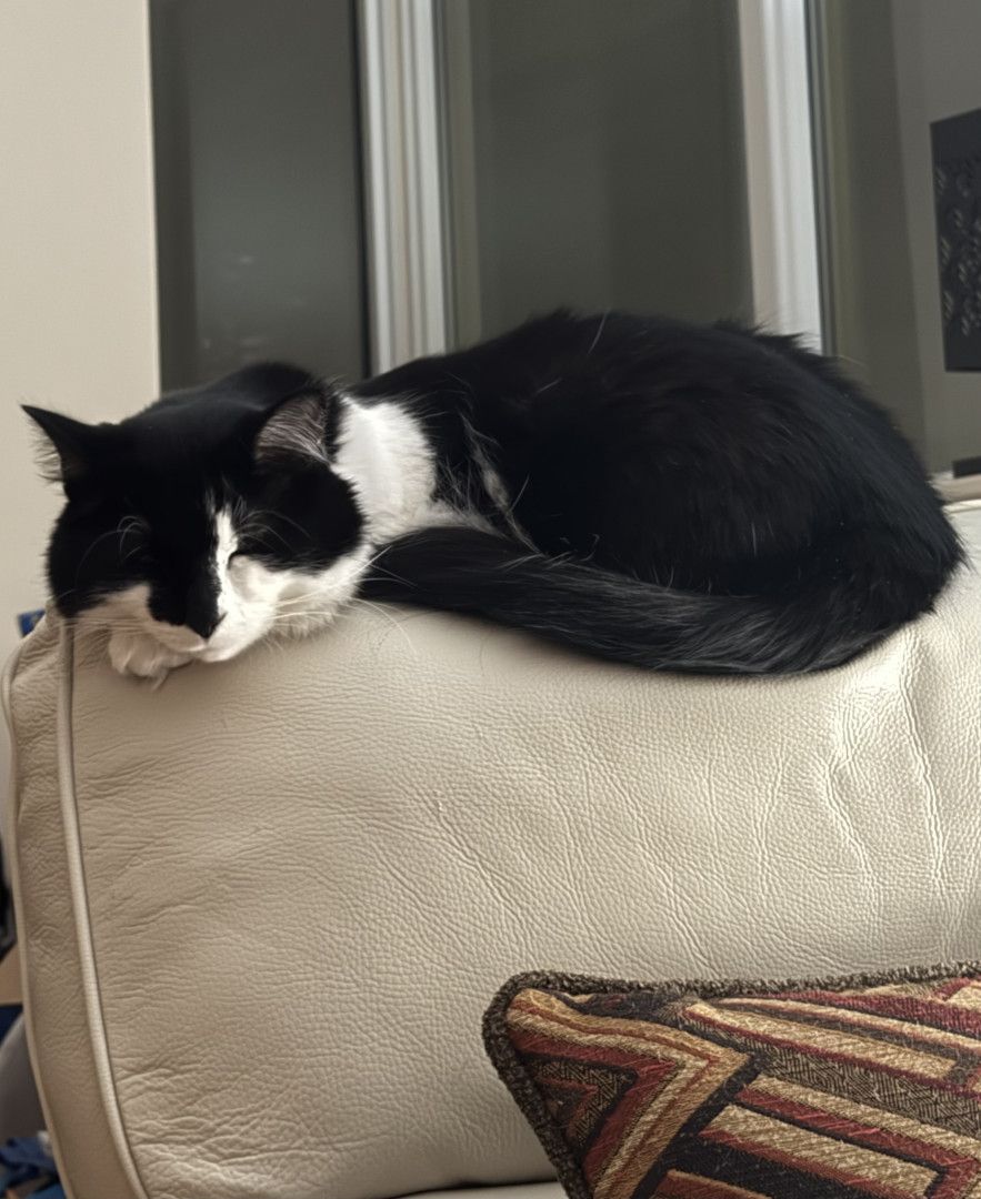 Sir FuzzPants is a relaxed, loving, very cuddly, and loves watching the world from his 6th floor window, or the comfort of his Amazon box.