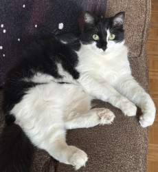 I’m sure if you met him, you would fall in love with him, and he would charm his way on to your lap, and bless you with his happy purrs the same as he does with me.