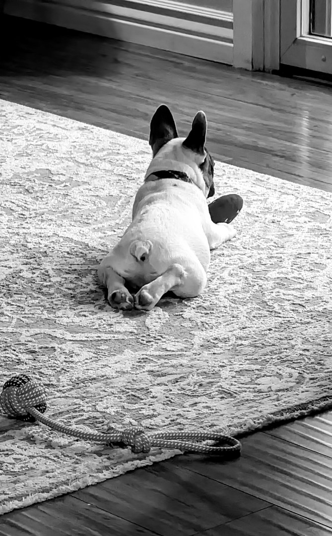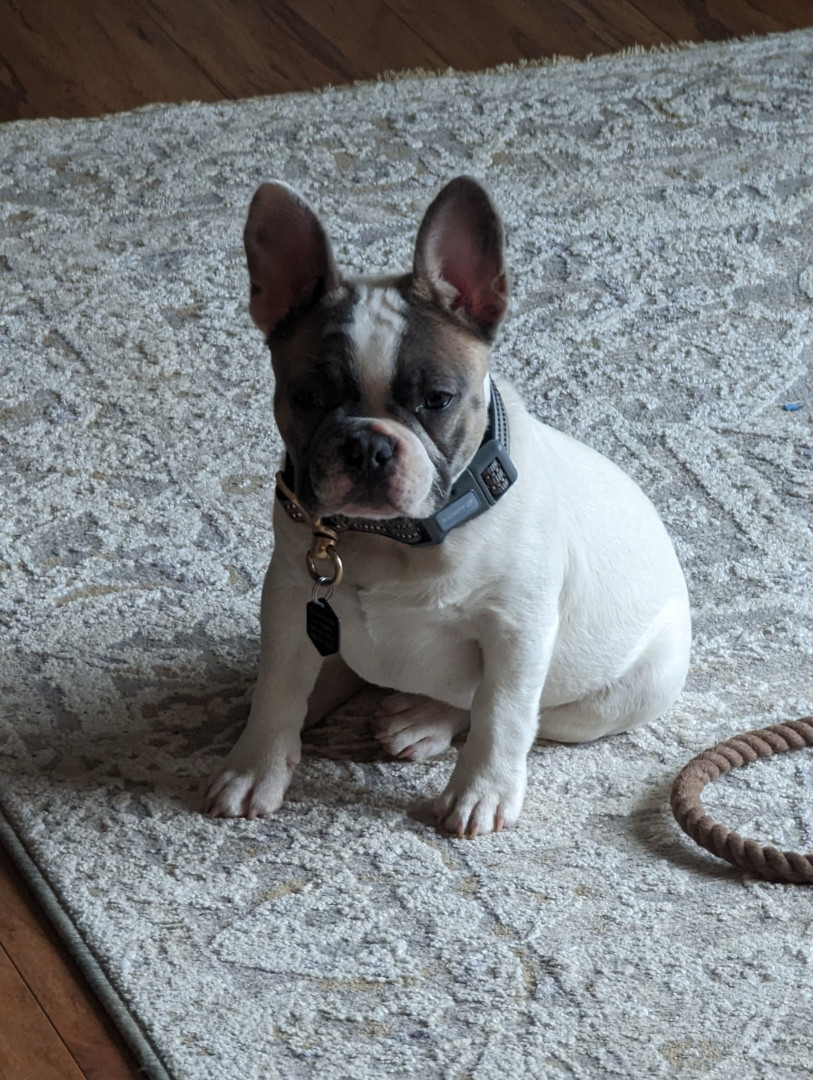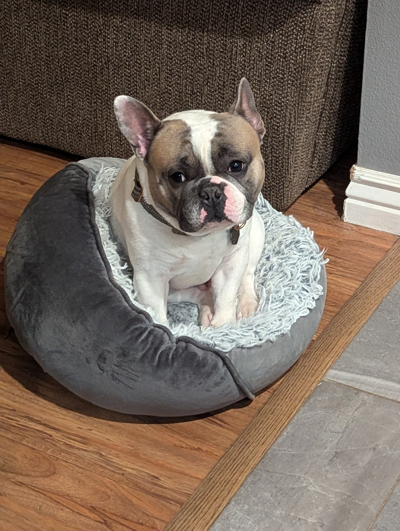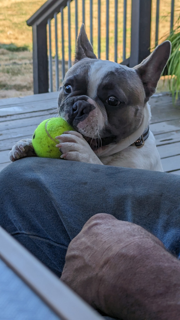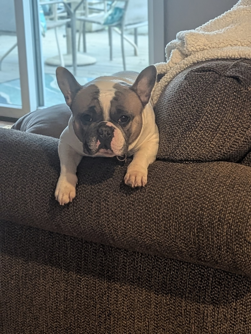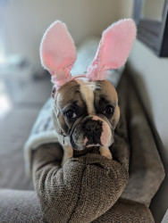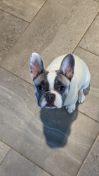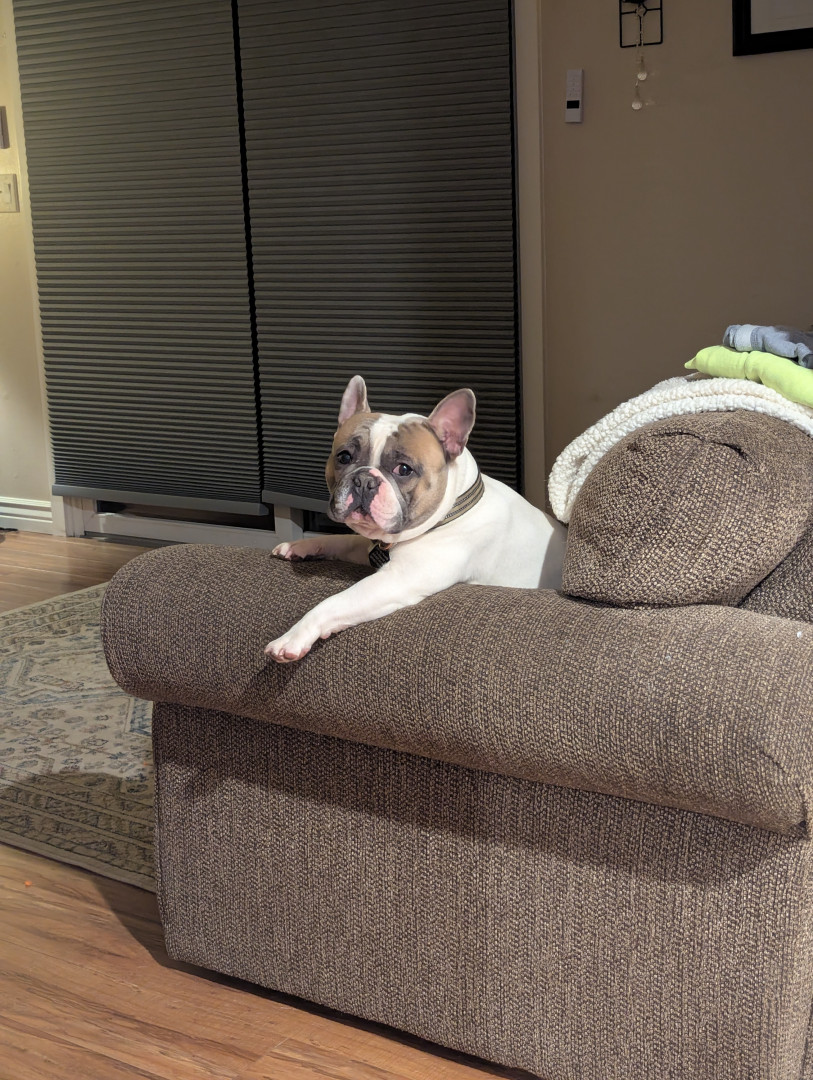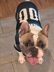 Because he's a wonderful companion and a beautiful Pied Frenchie that gives us so much joy and happiness and entertainment. He's a one of a kind...