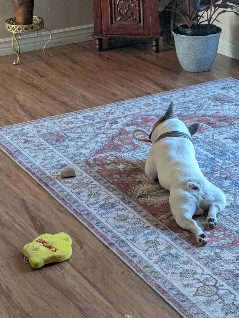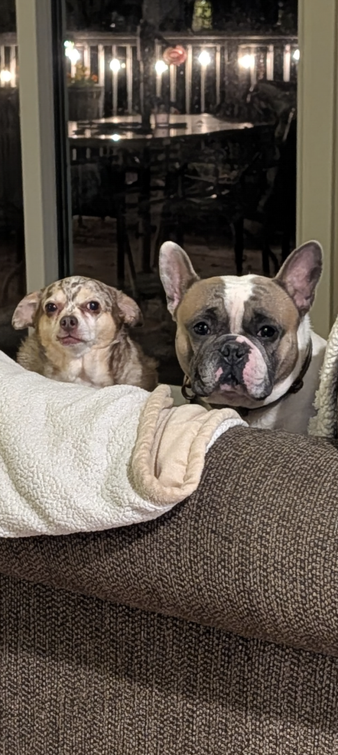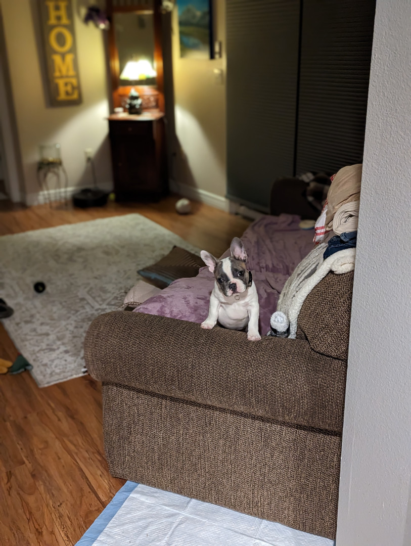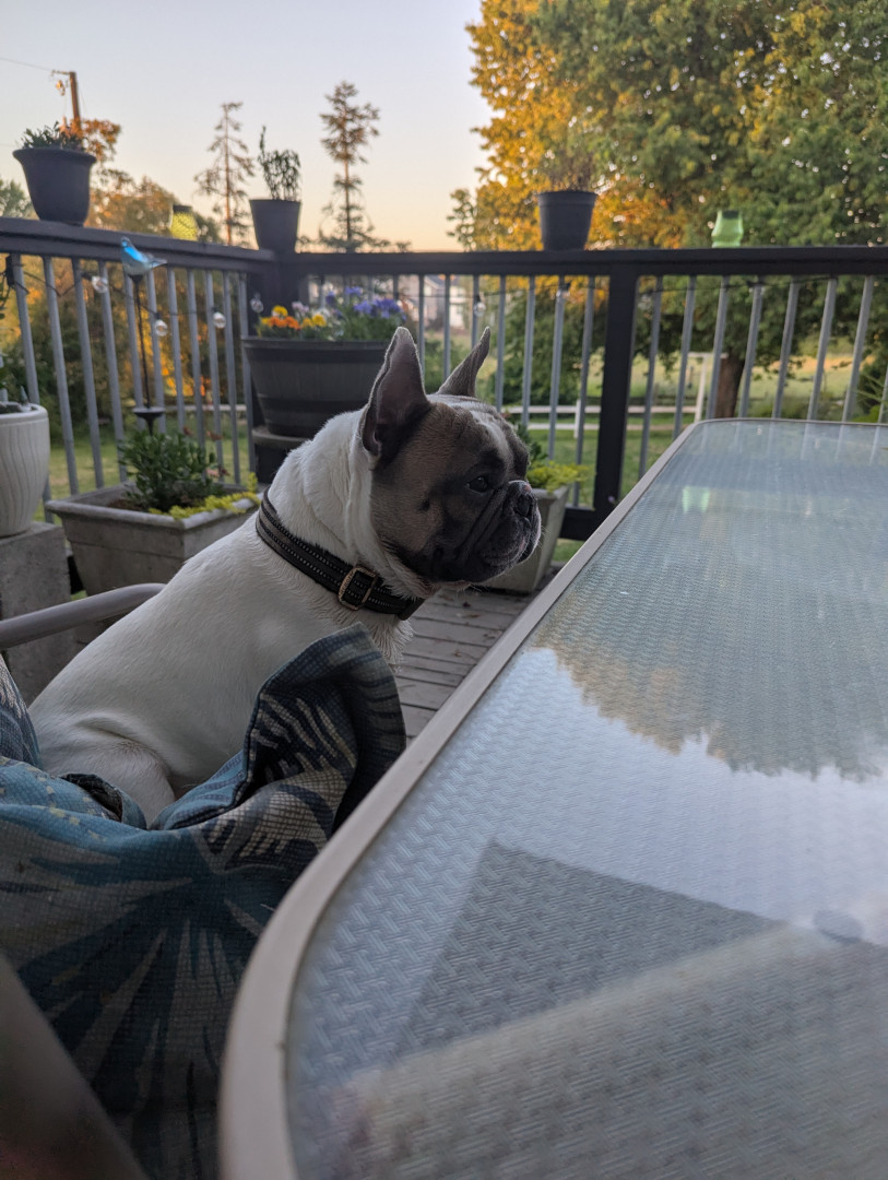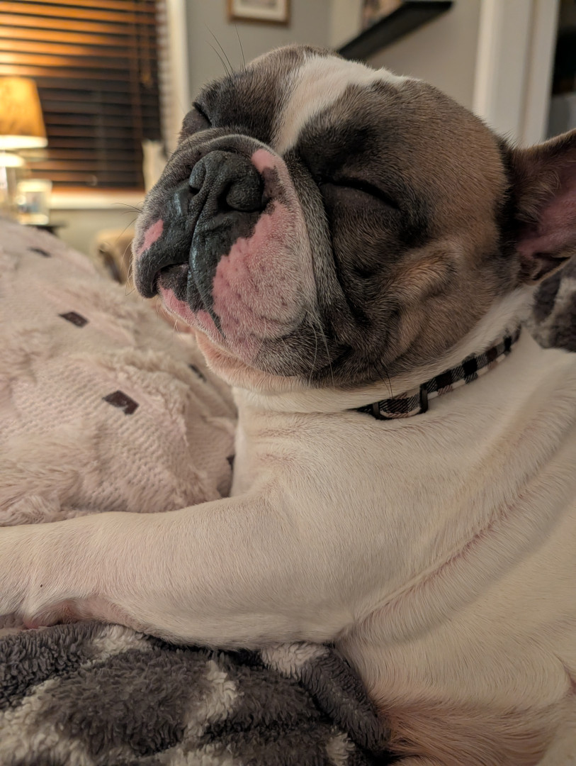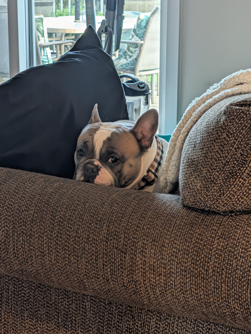 Because he's a wonderful companion and a beautiful Pied Frenchie that gives us so much joy and happiness and entertainment. He's a one of a kind...