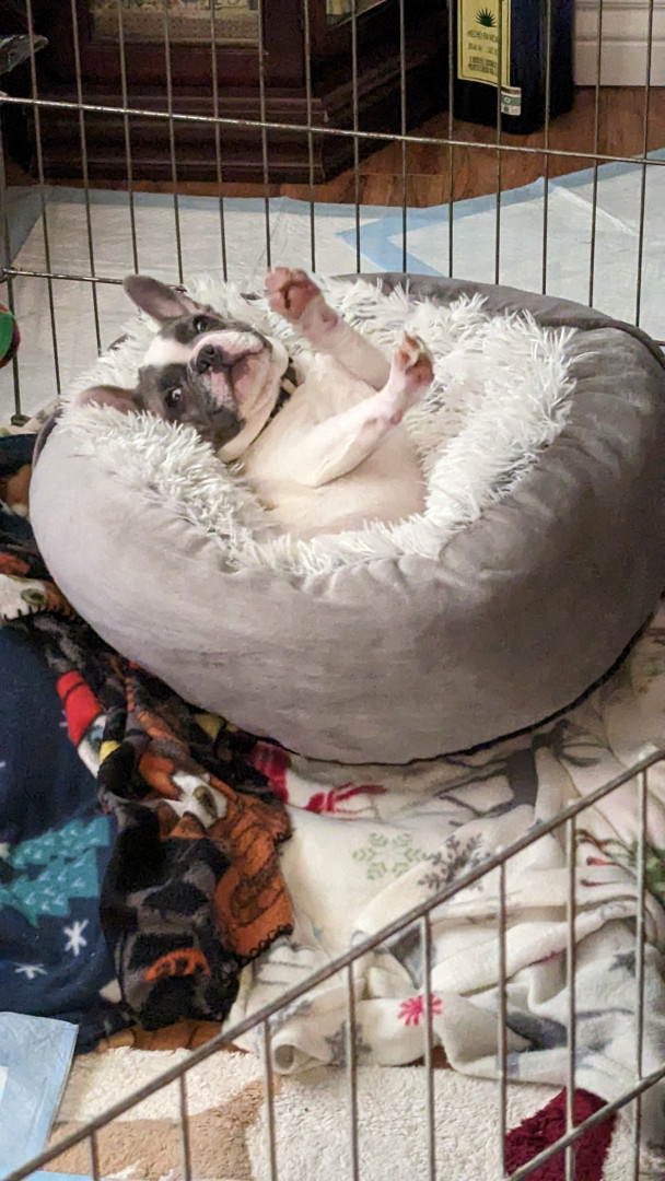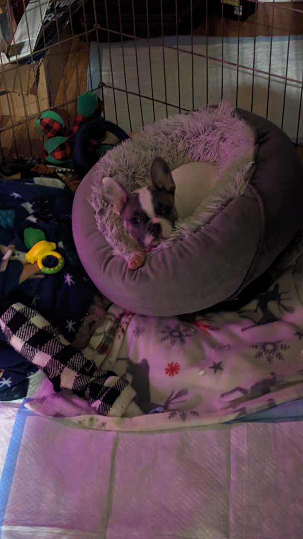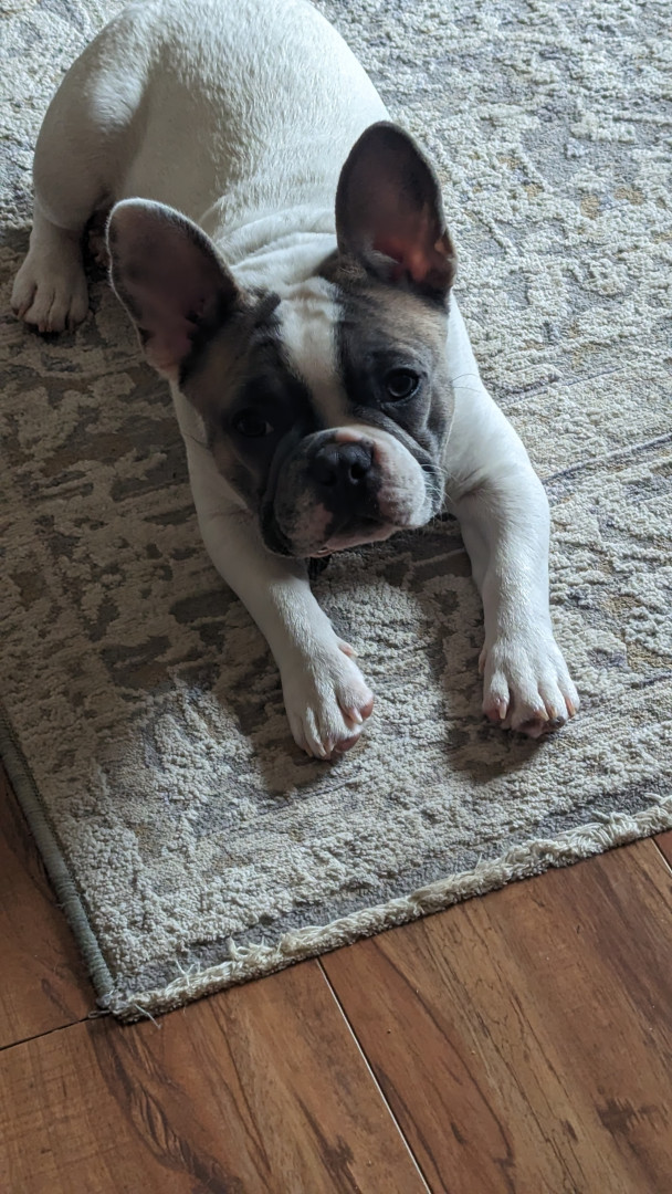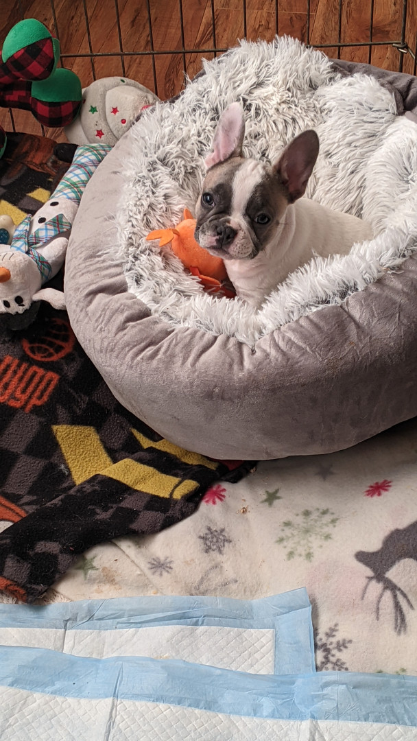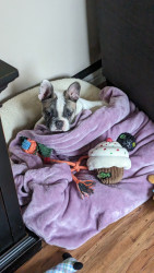 He is a very loving Frenchie with so much personality. Loves his toys naps and of course dinner.