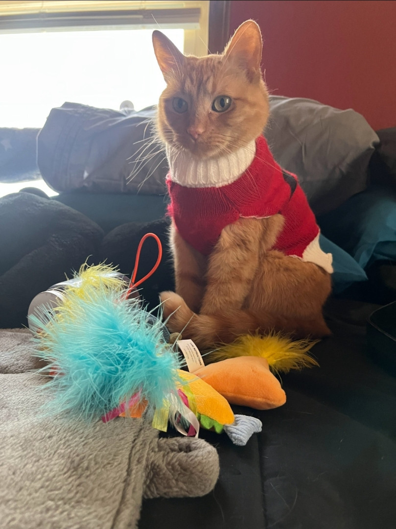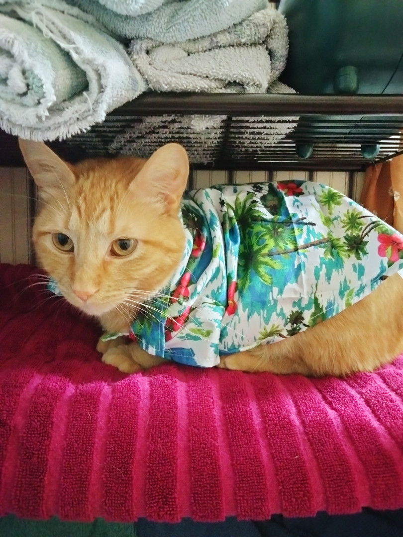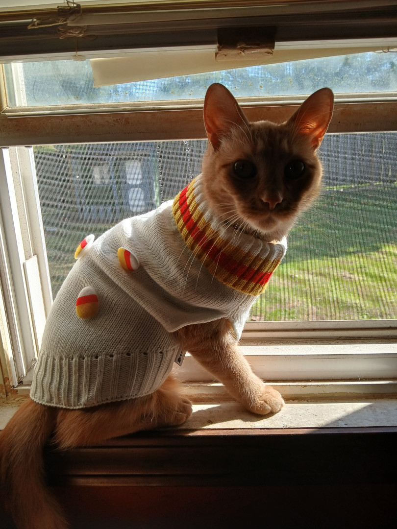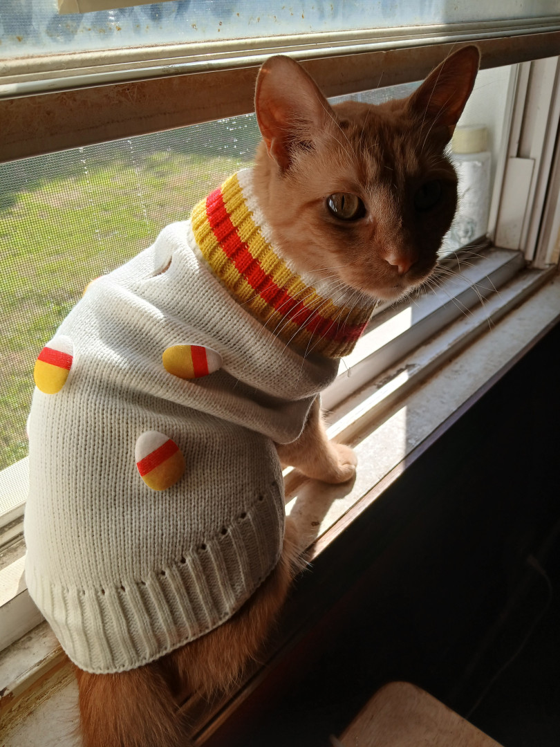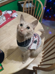 Nacho is quite the fashionable cat. From Hawaiian shirts to ugly Christmas sweaters, he's got it all!