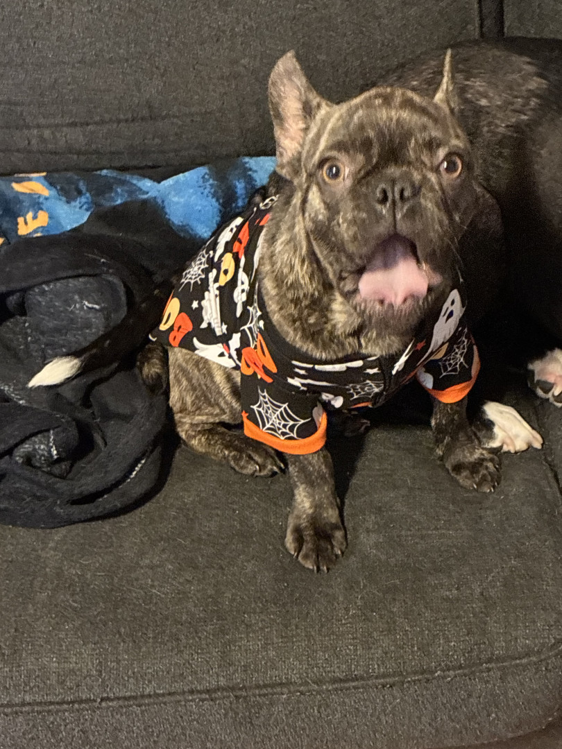 7 month old reverse brindle French Bulldog, sweet and happy