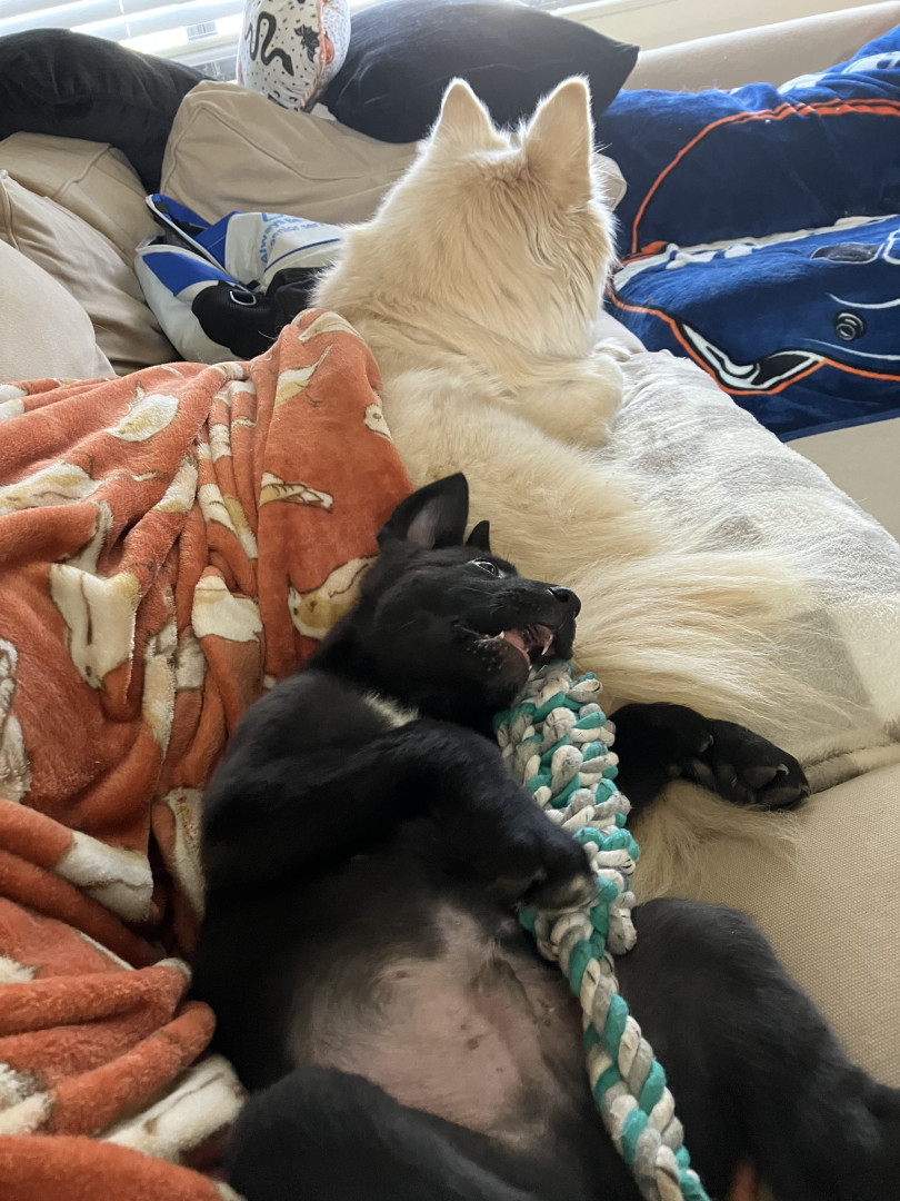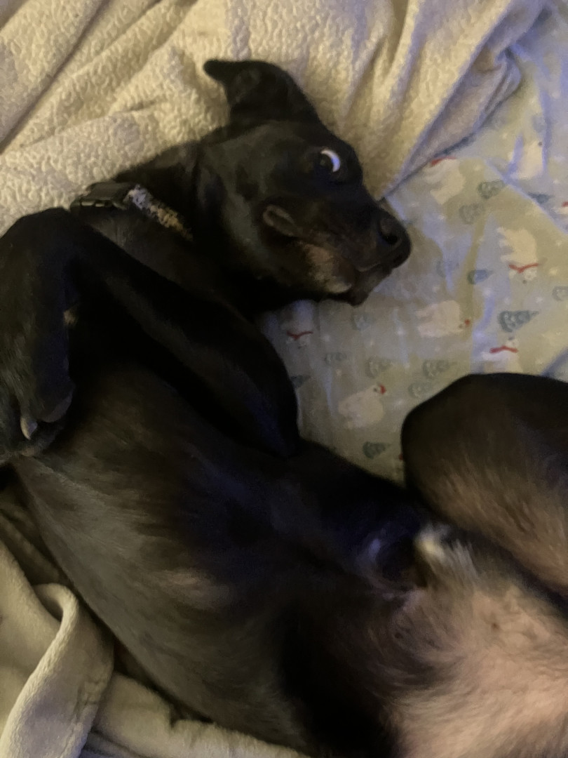 He would rather be snuggling with his humans than remain outside running around the backyard with his brother and sister. He is as loyal as they come! He is just different and has the best qualities. He’s one of a kind and for a little dude, he has the BIGGEST personality.If I had to choose, it would be his sassy face. He will give you the hardest “side eye” if you find him on a sass-day. But he immediately goes to playing because he will love you no matter what