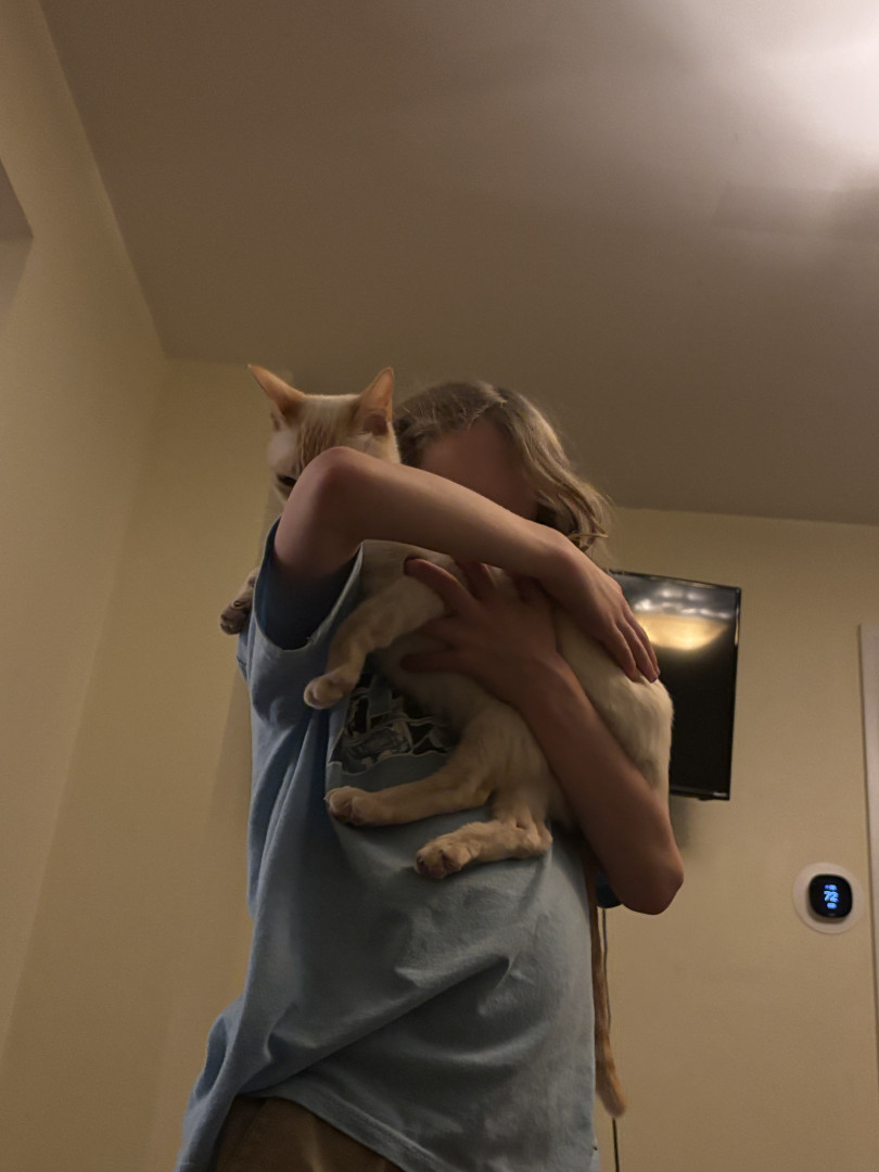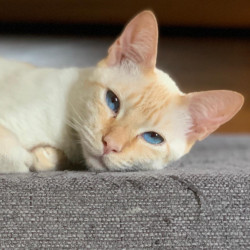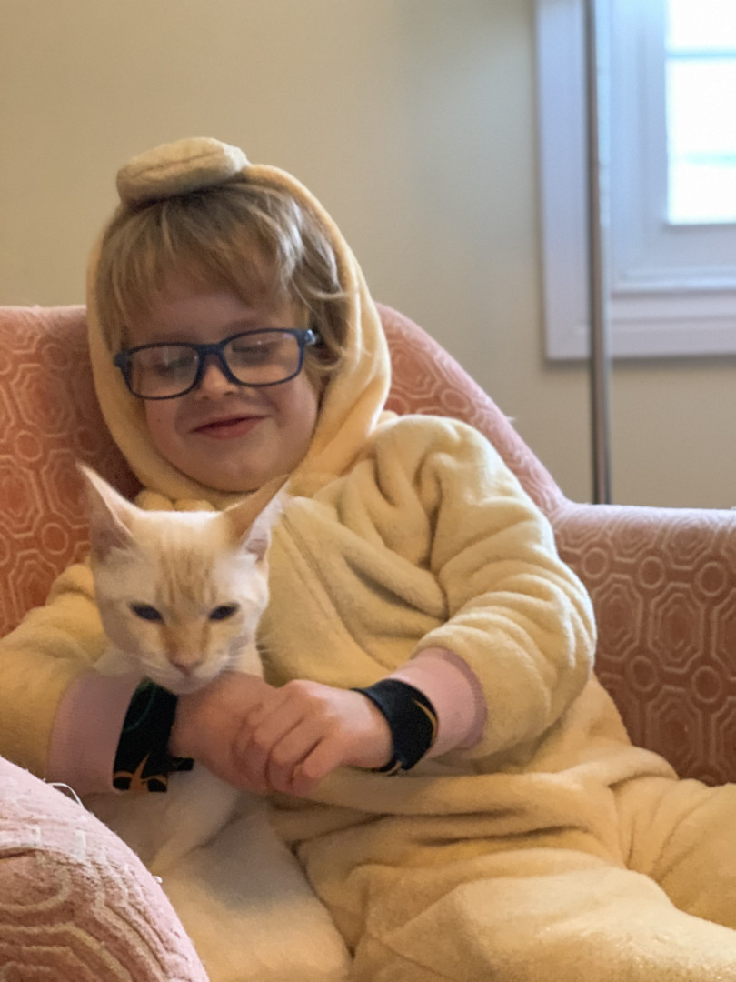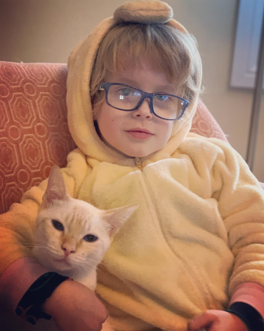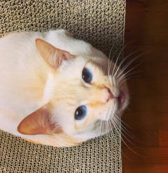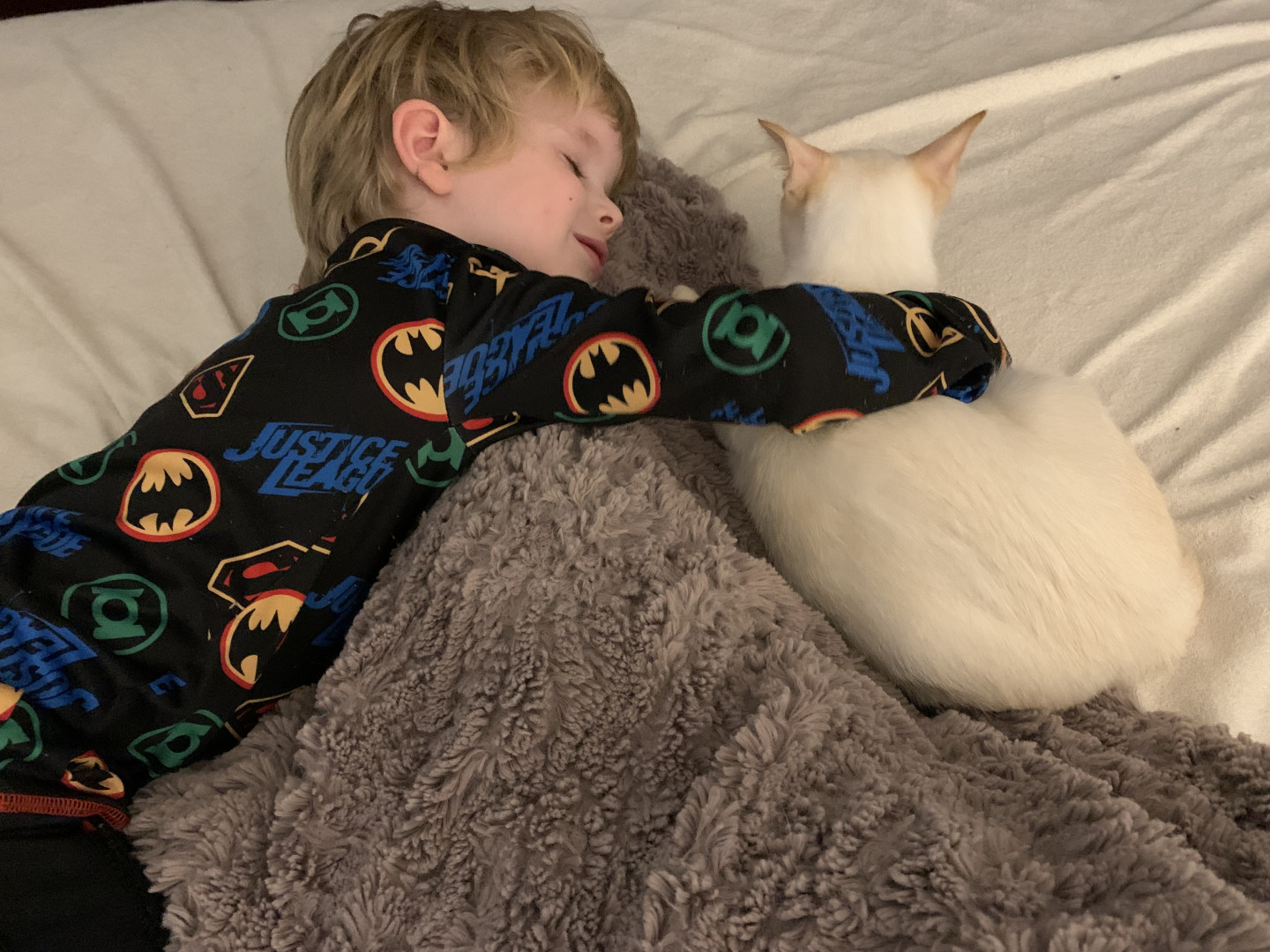 Sisu is a blind former barn cat who was rescued by my then 2 year old son.