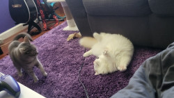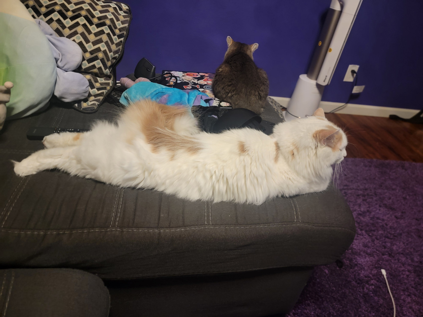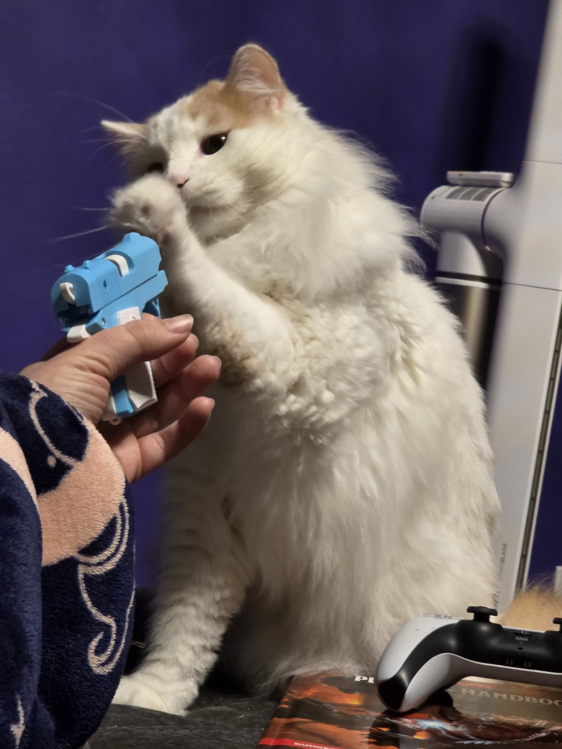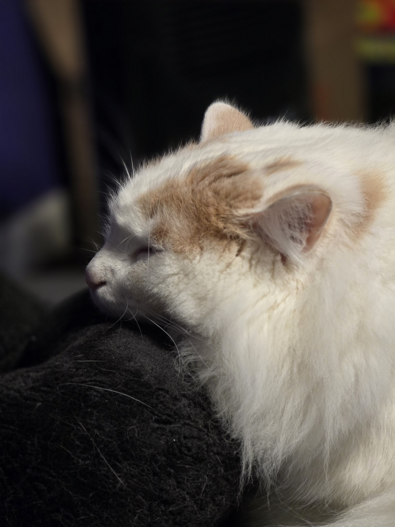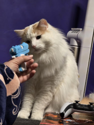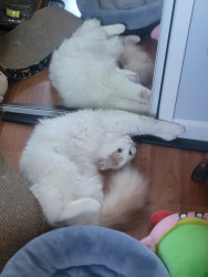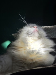 Skwisgaar is a silly boy who loves visitors, playing in paper bags, and snuggling on your tummy while he makes biscuits and drools!