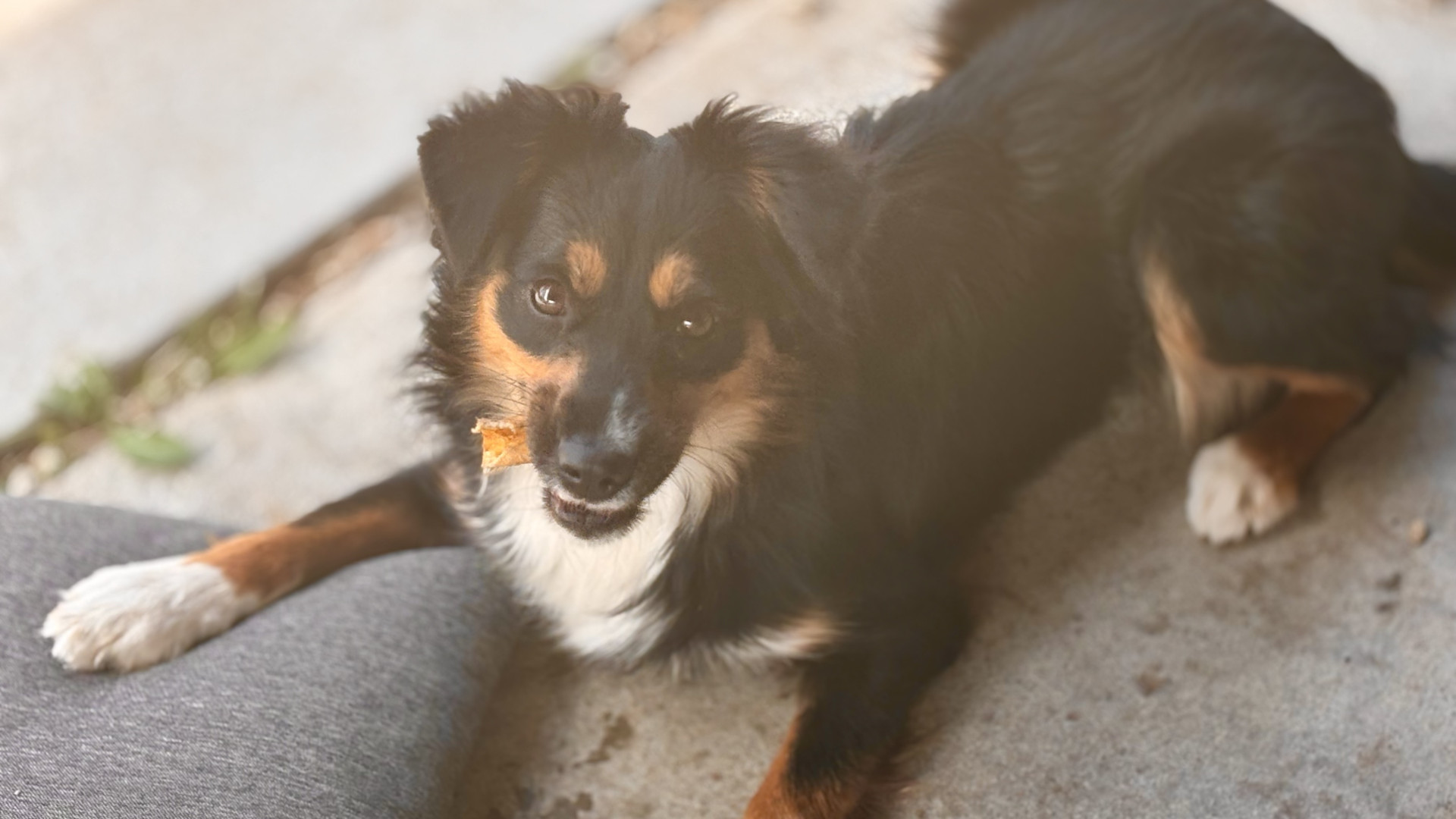 Her favorite toy is this brown pillow. She drags around her favorite treat is bones