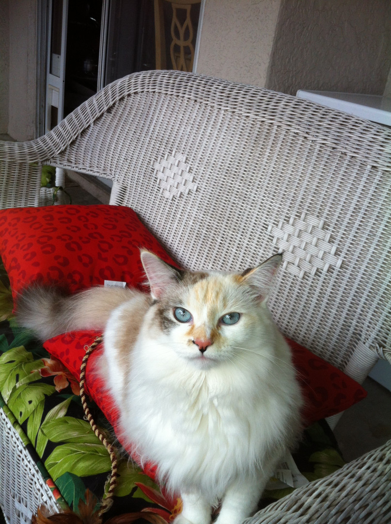 Skye is such a character, she spends her days on the screened patio catching sun rays and flirting with squirrels. We adopted Skye in 2012.
