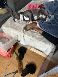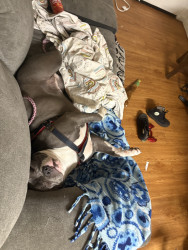 her dads a frenchie and her moms a blue fawn her names Skylar She’s so lovable and loves to sleep I got her for my aniexty but now she has anxiety x10 lol