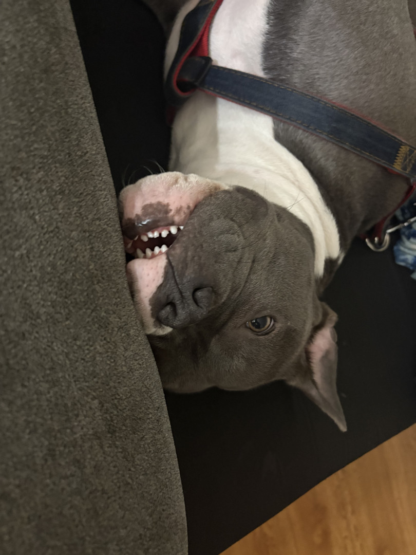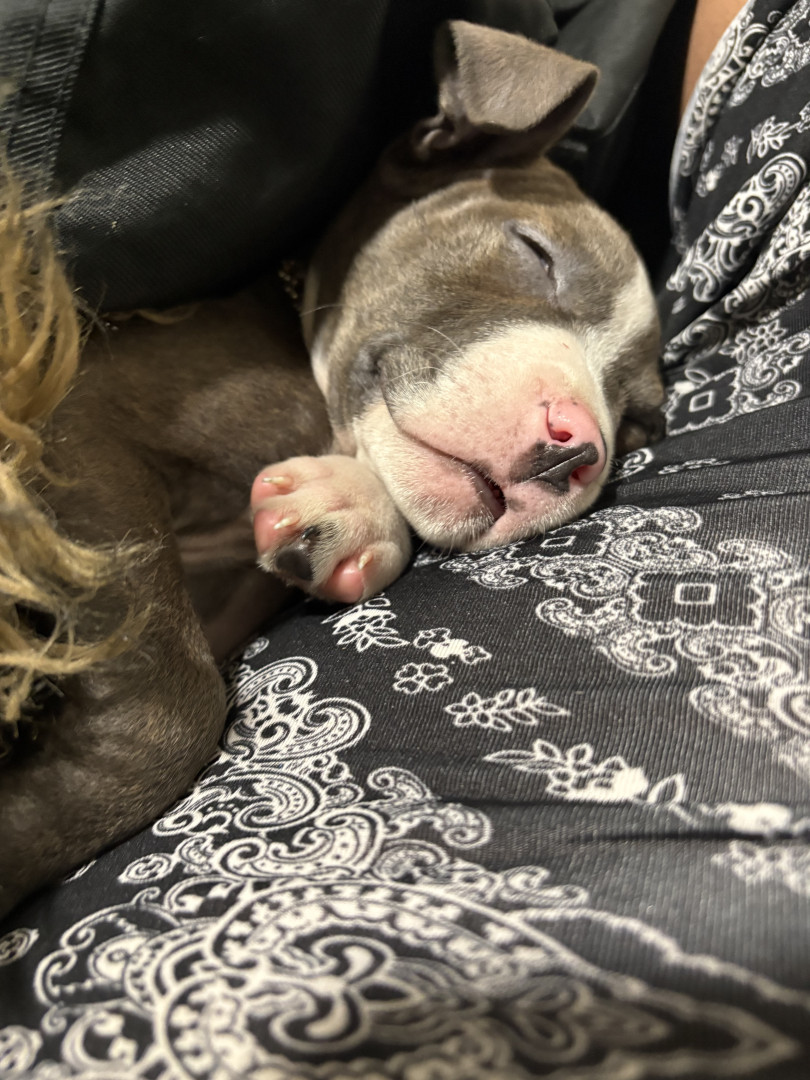 She’s an emotional support dog . She loves driving me crazy and following me everywhere I go &if I don’t blow her some bubbles she go crazy